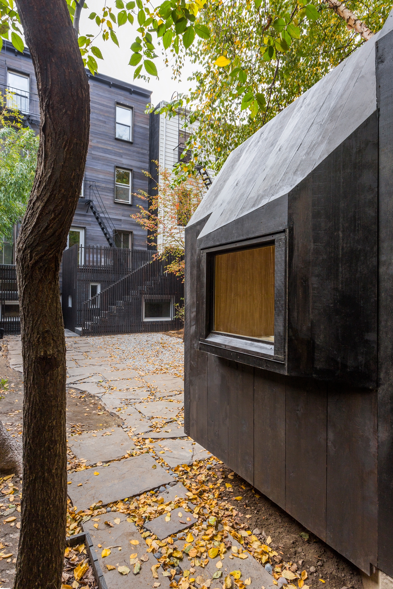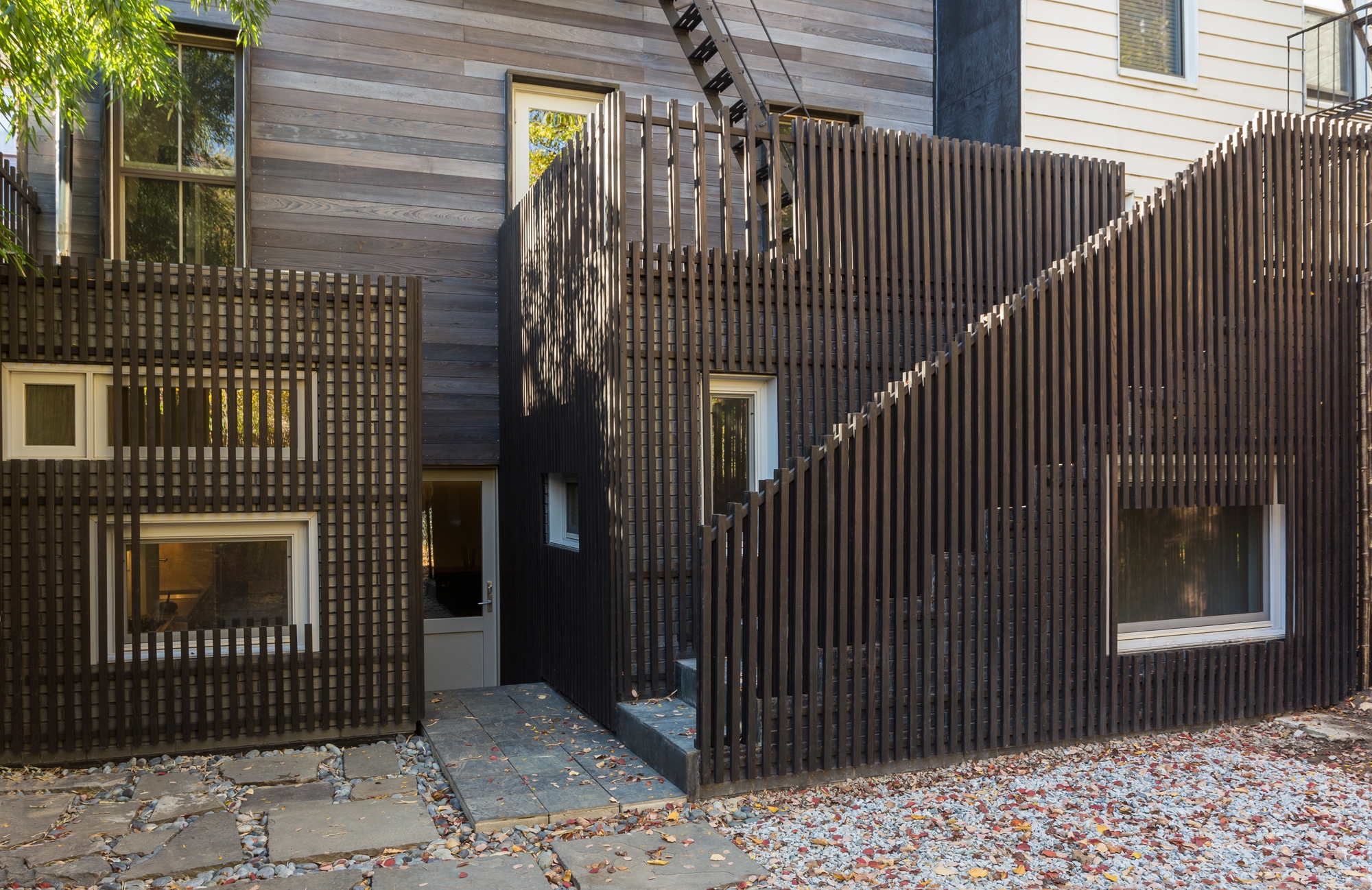 The evolution of living in our cities more and more tries to embrace nature, almost negating the urban character of neighborhoods. The design for a renovation and additions to a townhouse in Brooklyn is generated from the idea of fusing the interior space with the outdoor landscape through the creation of ground-up pavilions with specific experiential qualities. Two main pavilions have been juxtaposed to the existing building-in a way to have an unobstructed view of the garden through the windows and also blurred views-obtained from the partial over imposing of a wooden screen to the addition facades.
