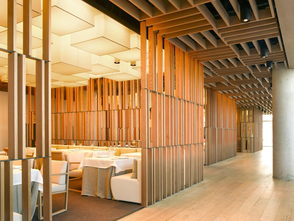 The wood used in floors, walls and ceiling as the only material of design, gives the restaurant a landmark warmth and allows space to provide the different environments: the dining room, services, and the chill out zone. This factor, together with a decisive and different lighting in each area makes a restaurant Bravo24 multidisciplinary pointer in the most cosmopolitan Barcelona.