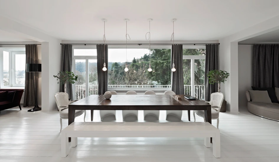 Located in Bebek, which is maybe the most tasteful, chick, expensive and all time favorite neighbourhood of Istanbul, C.V. House is an urban, elegant, modern house with a private garden in Ayse Sultan Woods and a magnificent view over Bosphorus. It is kind of ironic how the householder moved from an 'all black' house into such a light 'all white' house, but then again kind of understandable, since they would both need very neat, meticulous, hygienic hosts.