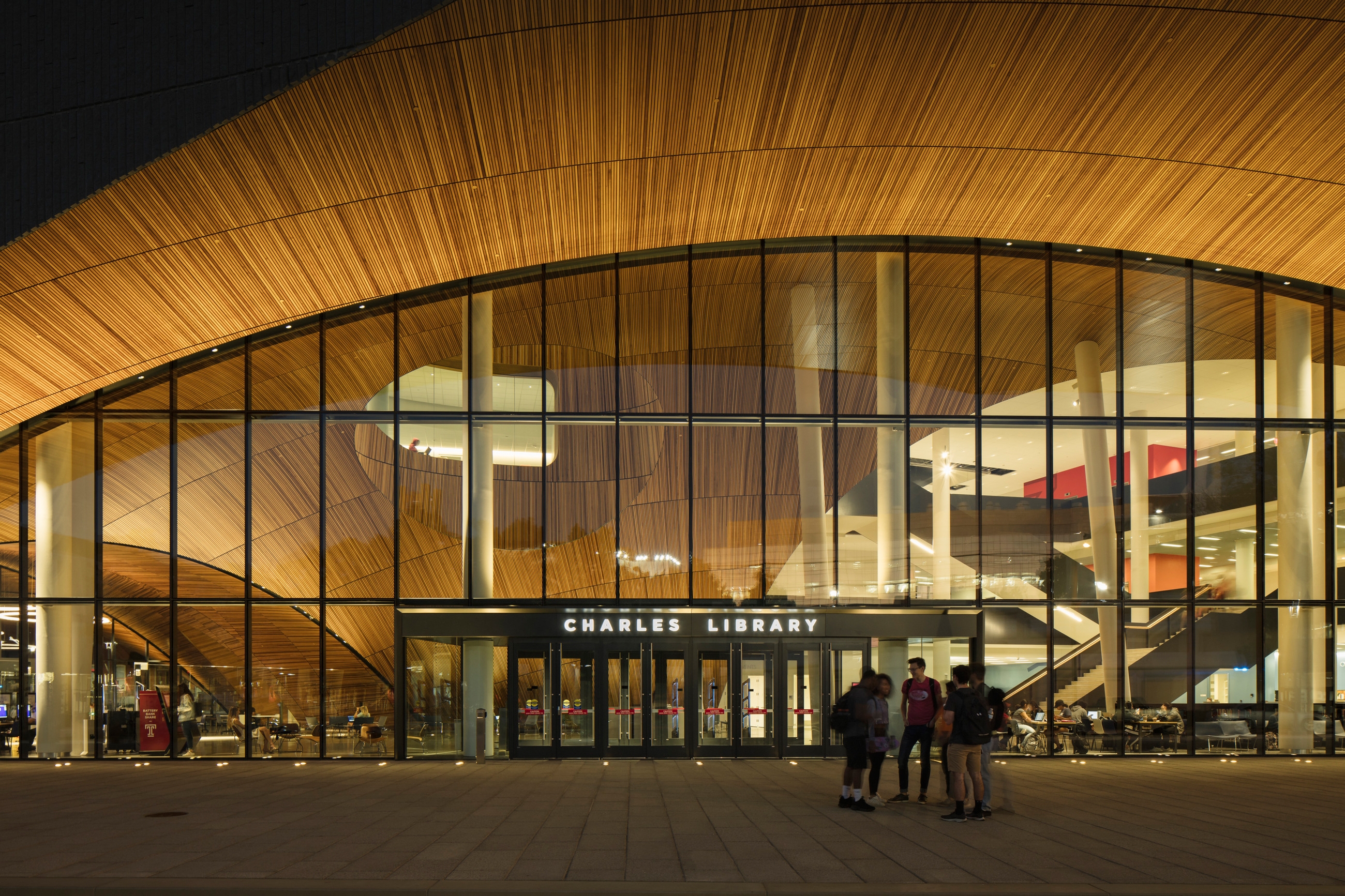 Charles Library is also committed to an all-mobile technology strategy, offering laptops and charging banks on every floor, which in turn liberates workspaces from being locked down by traditional desktops as the technological needs of the students continue to adapt. More than 40 meeting rooms and study spaces, interspersed throughout the building, are available for reservation. In welcoming students from all departments, and offering access to cutting edge technology and a variety of study spaces into a centralized location on campus, these resources will be more accessible than ever to the student body.