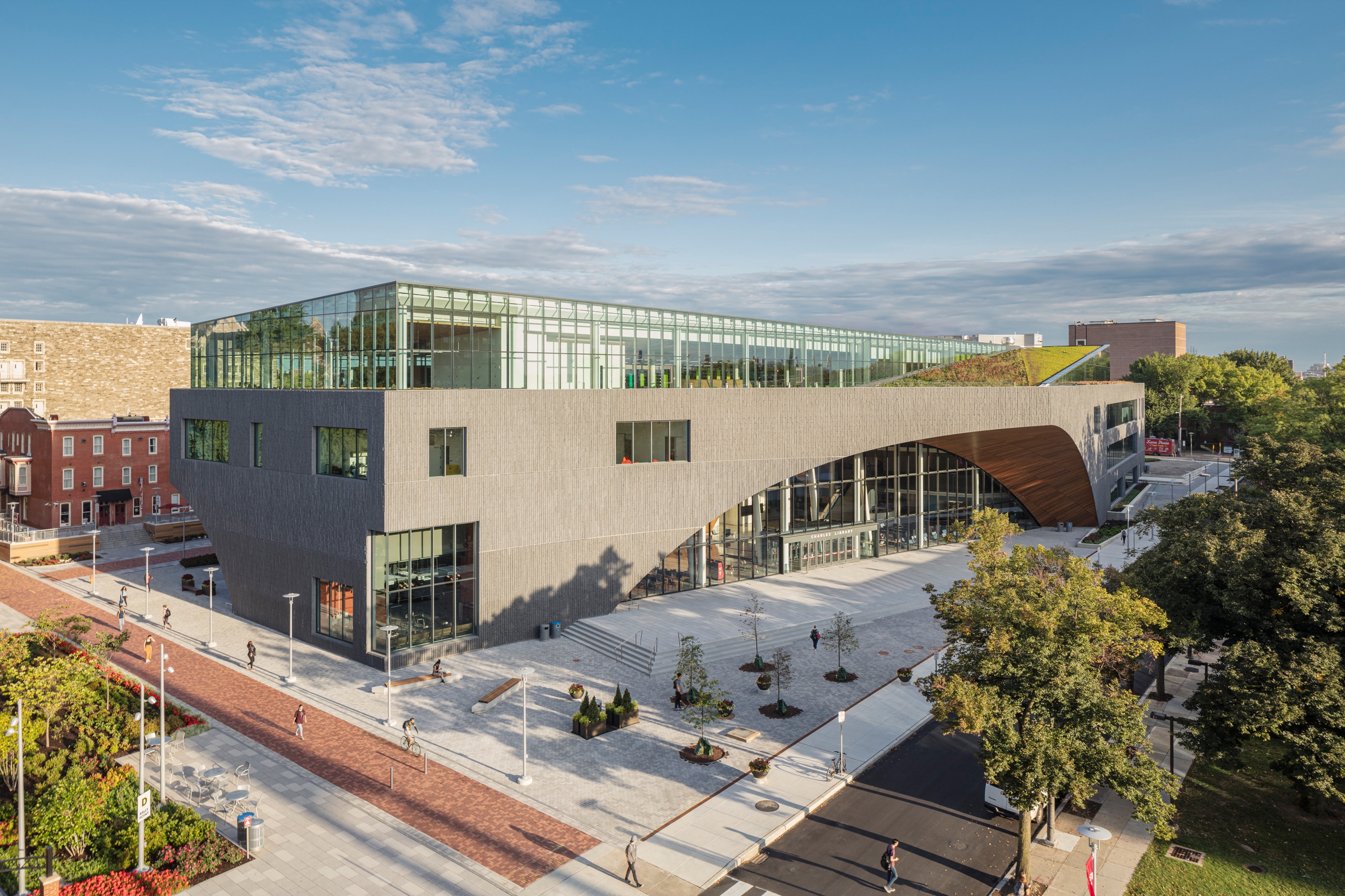 The new Charles Library at Temple University has opened its doors for the start of the Fall 2019 semester. Sited at the intersection of two major pedestrian pathways, Polett Walk and Liacouras Walk, and at the nexus of Temple’s Main Campus, the project anchors a new social and academic heart for the university’s diverse student body of over 39,000. Woven into the fabric of North Philadelphia, the building sits just one block off of Broad Street, the connecting artery to the city.