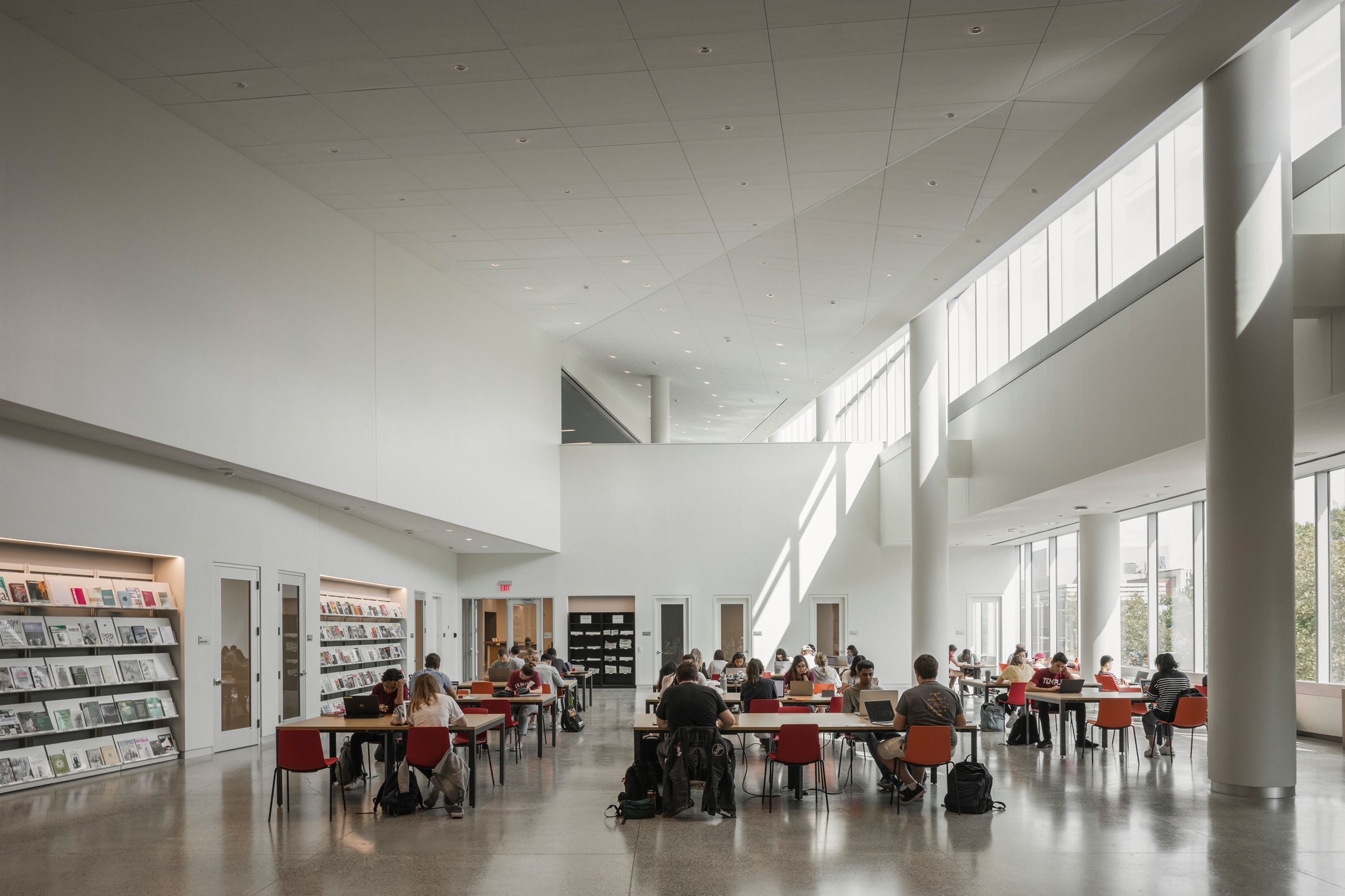 To that end, the library’s design houses multiple partner programs and academic resources under a shared roof, while responding to the demonstrated need for increased seating. Anchoring the second and third floors are the Student Success Center, which offers writing and tutoring support; the Loretta C. Duckworth Scholars Studio, with access to digital fabrication and immersive technologies; and Temple University Press.