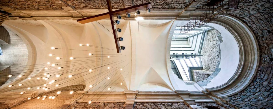 The project was aimed to convert the Church into an auditorium and a multifunctional cultural facility. The intervention has consolidated the church without deleting the process of deterioration and collapse that the building had suffered. The project has maintained the dimensions of the church interior space and, also, the unusual entries of natural light produced by partial roof collapses. Rather than reconstructing the church, the intervention has just consolidated the old fabric distinguishing clearly the new elements executed of the original ones. The renovation carried out allows to read historical wounds and the building's most important spatial values without giving up the use of contemporary language in the new elements introduced in the intervention.