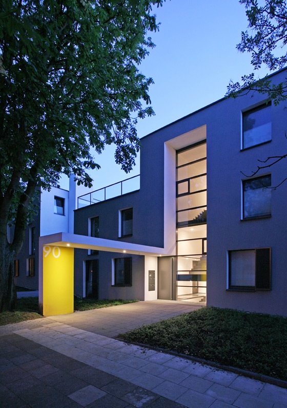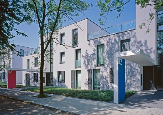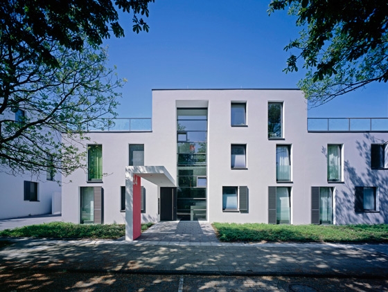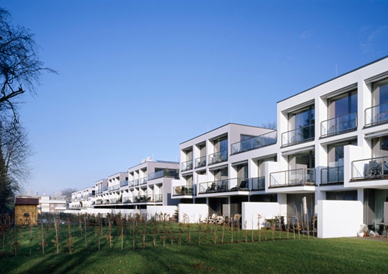 The clear linear building structure forms a pleasant contrast to the heterogeneous buildings of the neighbourhood. However, the differentiated outline integrates the new buildings into the small-structured context. All flats open up towards the gardens in the west with room-high glazings, merging internal and external spaces.