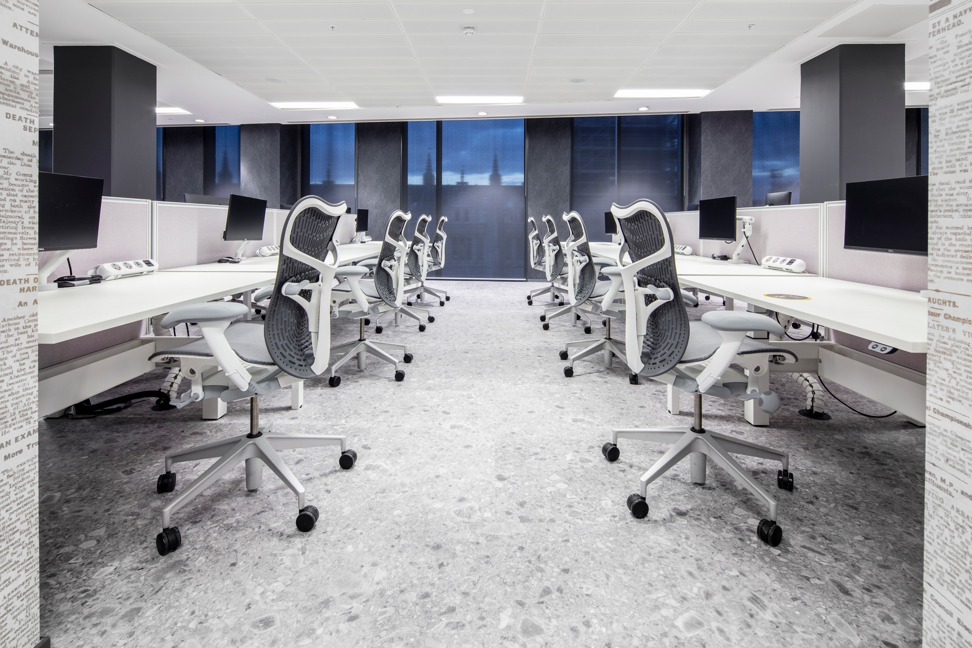 Perfectly coordinated multi-category project flooring with a design that draws inspiration from EY’s brand, Wellwood Leslie Architects created a floorplan that reflects the angles of the company’s logo and which gives the open plan space multiple layers, simultaneously identifying areas.
