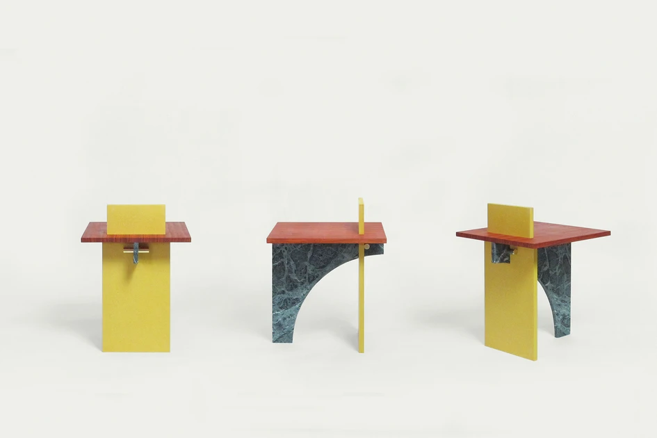 A series of low tables made of three flat components. Each component is produced from a range of materials, representing a range of values. These components (and values) are then assembled to create varying compositions of texture, color and cost. Each component can be easily mixed and matched; the tables are constructed without glue. The tables are also functionally flexible; they can be used individually, in a line or stacked as shelving. Various configurations are illustrated in the Face Value posters.