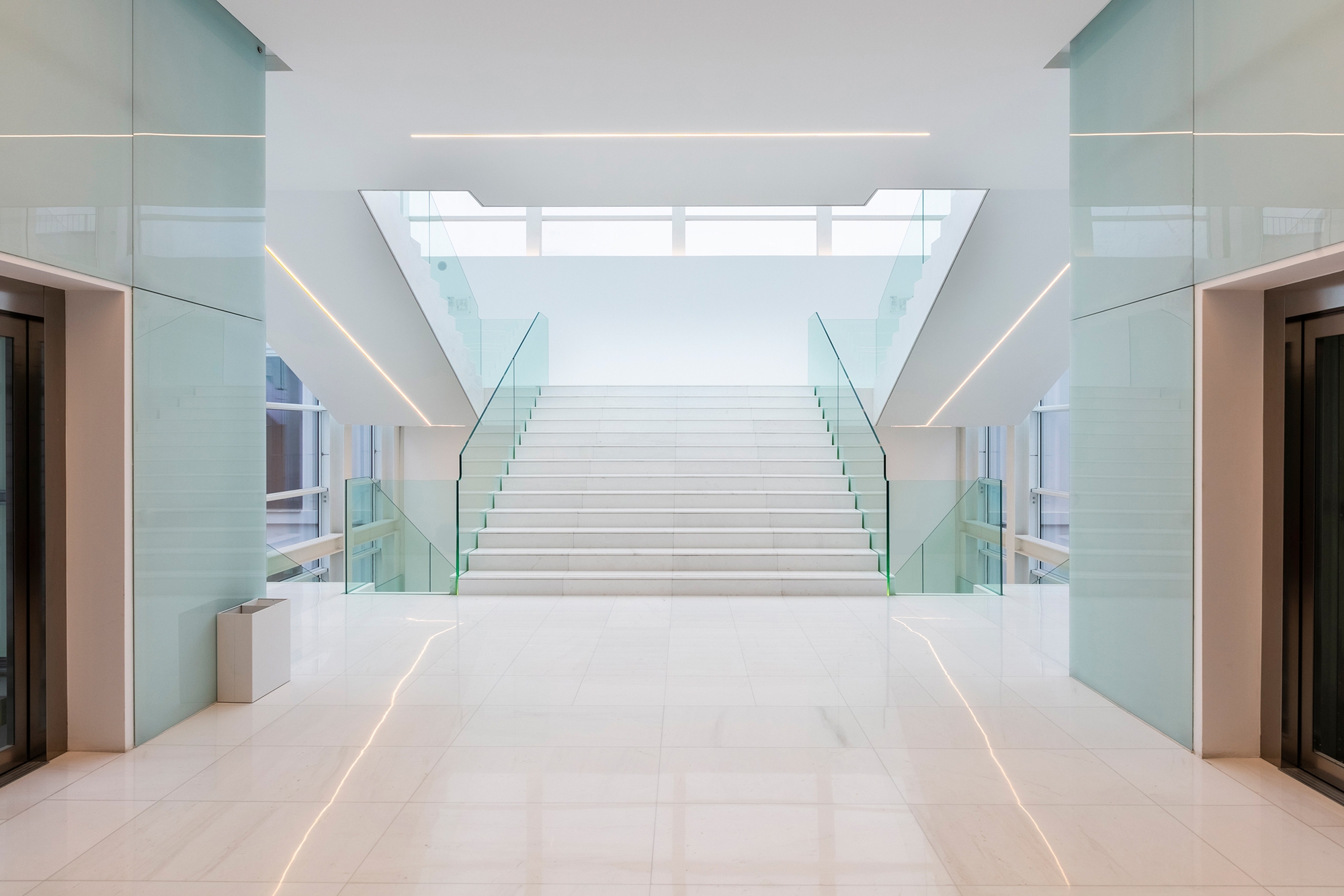 Obiettivo prioritario del cliente era quello di far emergere nei nuovi spazi di lavoro la duplice identità del Gruppo: da un lato le solide radici, dall'altra la volontà di proiettarsi verso il futuro attraverso un approccio innovativo. Abbiamo puntato a realizzare ambienti fluidi e dinamici, in connessione visiva tra loro, che comunicassero insieme i tre valori fondamentali della filosofia aziendale, ovvero Innova-zione, Internazionalità e Sostenibilità. Tali valori sono espressi al meglio nelle ampie aree di connes-sione, destinate alla socialità, all’attesa e al confronto, che guidano l’ospite attraverso passa-to/presente/futuro aziendali.
