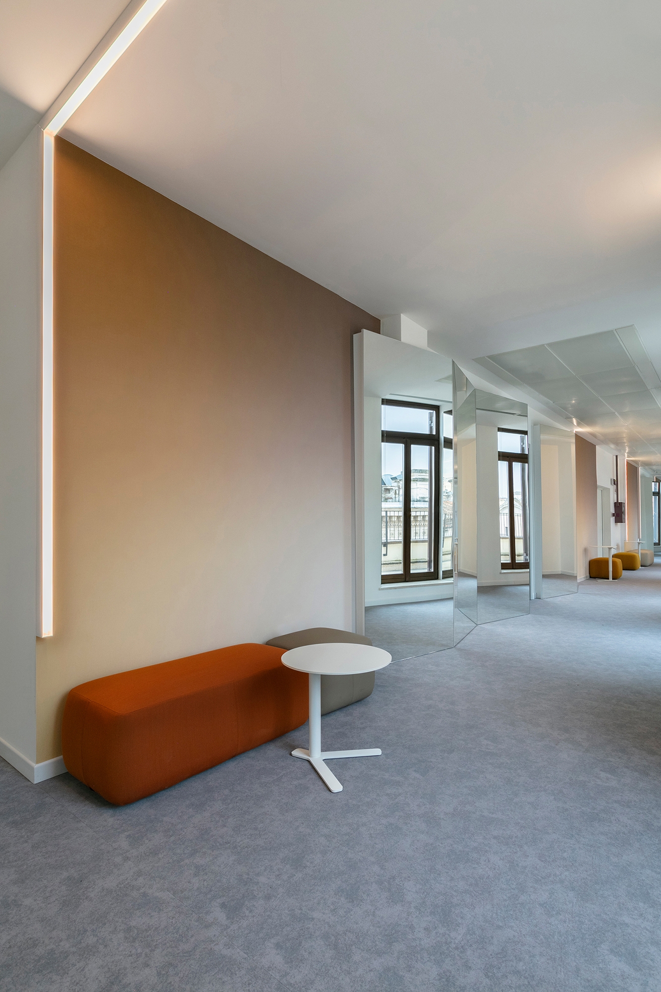 Realizzati all’interno di un palazzo storico della capitale, gli spazi di lavoro di una holding italiana vantano scelte progettuali inedite dove le architetture interne diventano un tutt’uno con il rivestimento decorativo a parete in nome della massima unità formale. Il concept, firmato dallo Studio Il Prisma, esprime al meglio le richieste dell’azienda e insieme le declinazioni delle collezioni di wallcovering Glamora.