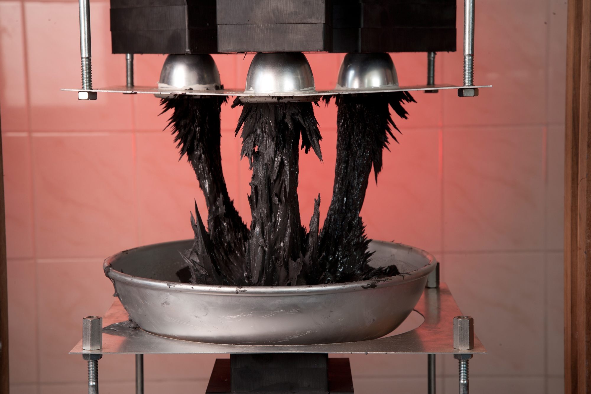 It is the combination of the magnetmachine with the plastic material, developed especially for this purpose, that enabled me to start a small but efficient chain of production. The forms and products are characterized by the freakisch and organic shapes that are so typical of nature itself.
