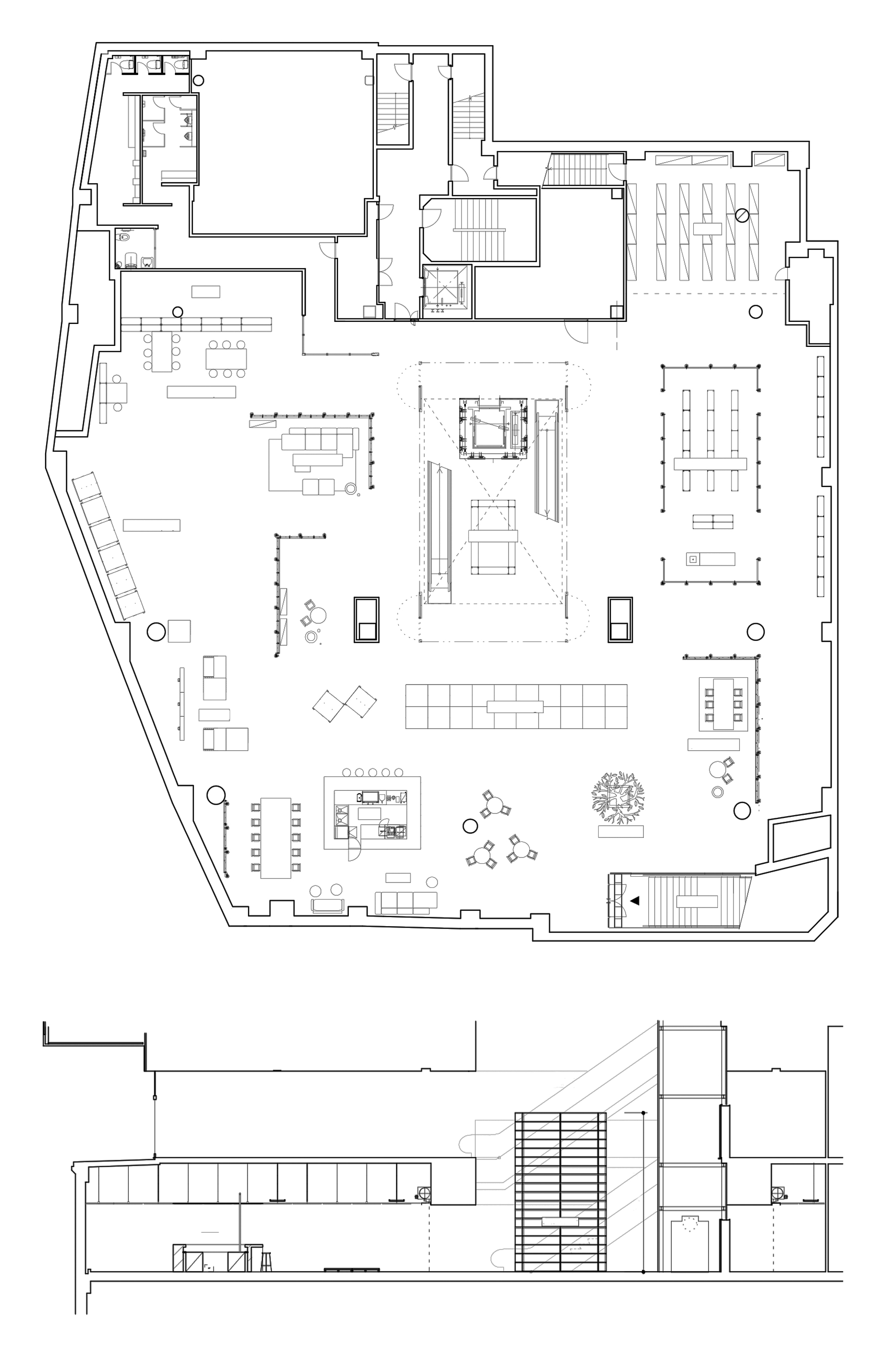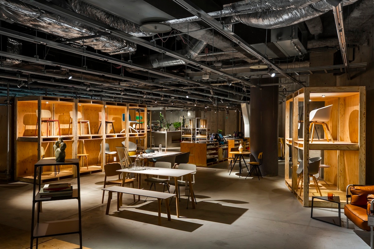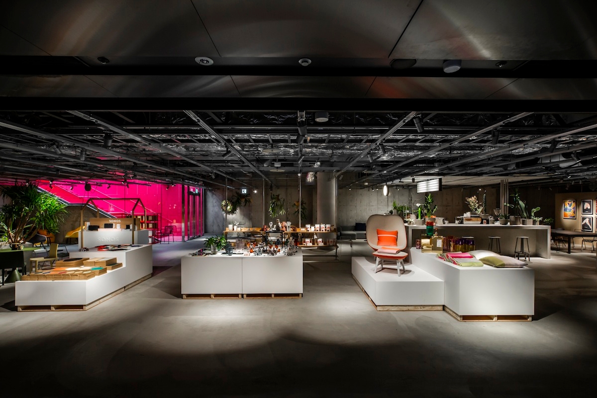 Since this space consisting of the two kinds of interfaces can be completely cleared overnight except for the cafe area, it can easily respond to specific requests such as "a half of the space needs to be cleared to hold a live performance". Naturally, store layouts can be easily modified in the same way according to market trends on a daily basis. These "interface" systems allow the store to expand through collaboration with various designers throughout the year.
