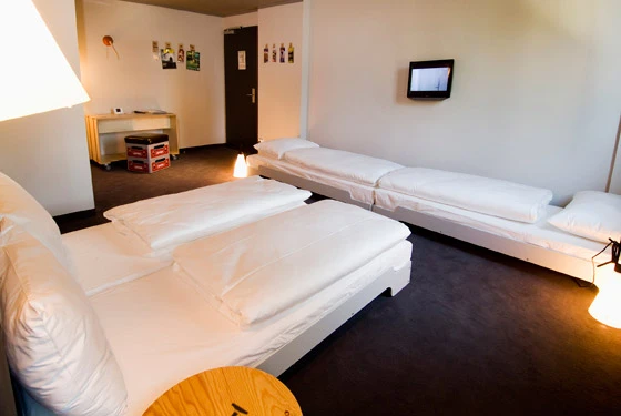 Another highlight of the Superbude is the stackable bed concept: the rejuvenated design classic of Rolf Heide from 1968 helps convert a two-bed room into a four-bed room in an instant. Consequently, the 74 room hotel caters for up to 240 guests.