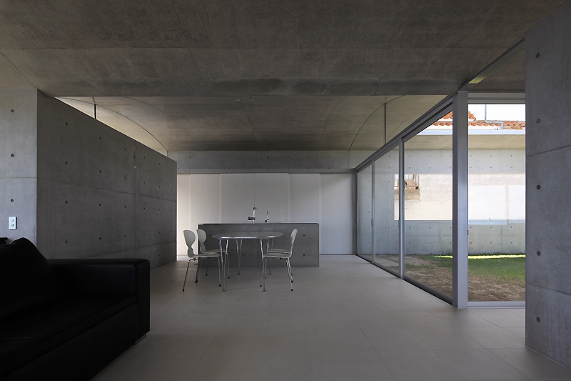 But in this house, light construction and simple space is realized by arranging a steal frame with the reinforced concrete.