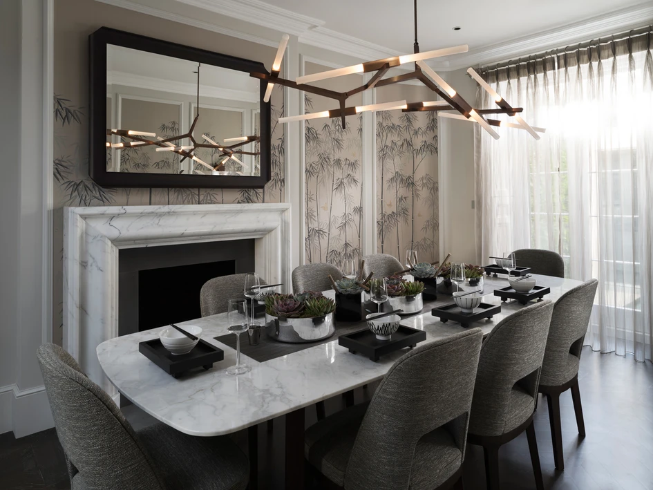 The complete renovation of a Grade II listed, 19th century Neo-Georgian town house has resulted in an exquisitely crafted contemporary classic. The reconfigured interiors incorporate a sub-basement with an impressive gym and wellness area, three reception rooms, five bedrooms, exterior terraces, as well as a media room and garage. Cutting-edge architectural features draw light into the heart of the house with a glass bridge and central glass lightwell; while in the reception rooms the existing period details were the starting point for the richly detailed design scheme.