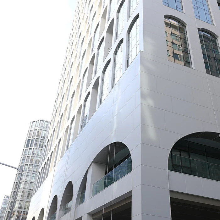 Protagoniste del progetto sono le grandi lastre Level, nel formato 160x320 cm e spessore 6,5 mm, utilizzate per rivestire complessivamente 34.000 m² di facciate. La tonalità White delle lastre Level Tinta Unita, pura ed essenziale, esalta la monumentalità dell’edificio e ne definisce l’identità contemporanea, coniugando innovazione estetica, alte prestazioni tecniche e leggerezza visiva.