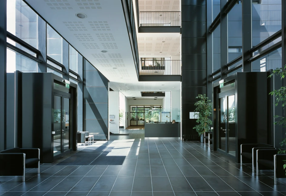 The staggered gables form a characteristic profile towards the river, and together with the open central room they express the active meeting points of the building. The offices offer of a more rational, clear-cut expression.