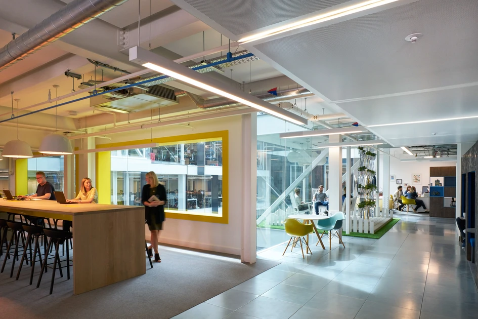 Although one of the top 10 UK media agencies Maxus has retained much of the personality of their former smaller self and wanted to reflect their informal, friendly and unpretentious nature in their new workplace. The design concept for the space followed Maxus’s key drivers of communication and fun, which links to the statue of the Greek mythological figure Hermes; the messenger to the gods, which sits on top of the building.