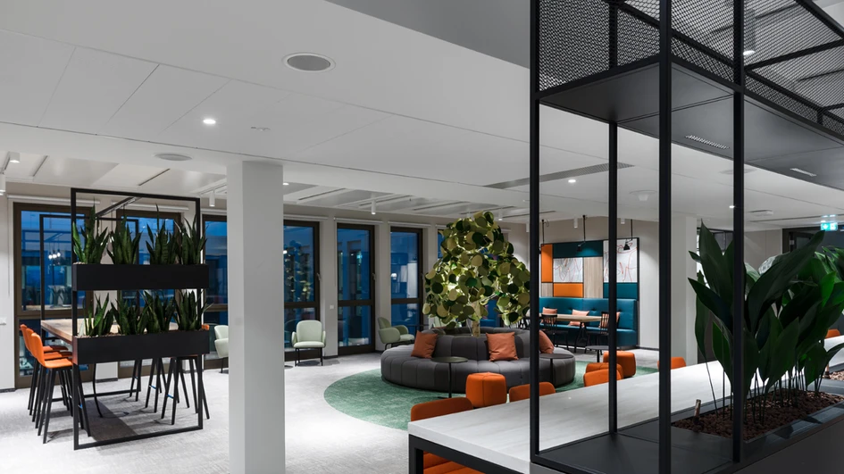 A customised special solution was required for the Euler Hermes (Allianz Trade) office building in Hamburg, which was custom-made from high-quality and durable metal. In addition to an extravagant wall panel in the entrance area, which was planted with moss as a visual highlight, semi-transparent room dividers with mesh inserts made of expanded metal were produced for the canteen and staff areas. Some of these were fitted with planters to create a calming and natural room atmosphere.