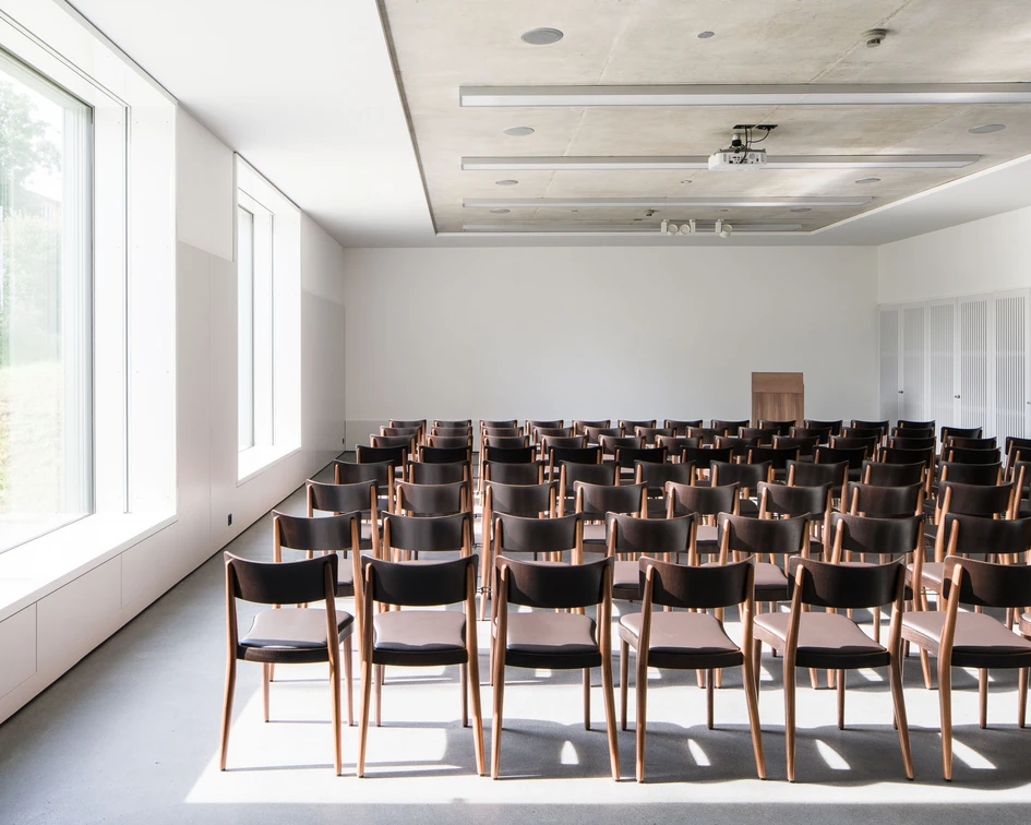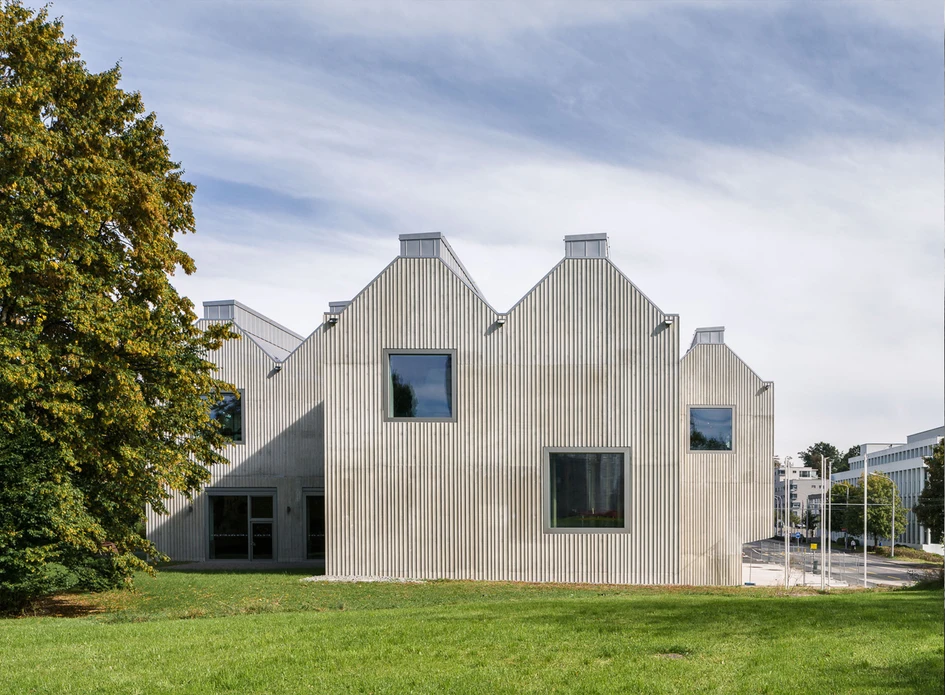 The building of the Neues Naturmuseum St. Gallen extends the existing disposition of public buildings and facilities of the church St. Maria Neudorf and the Botanical Garden on the eastern edge of St. Gallen's city centre. In dialogue with the sacred presence of the Church of St. Maria and the functional expression of the buildings of the Botanical Garden, the Neues Naturmuseum positions itself as a building with representative character and modern, functional qualities. Due to the urban planning positioning and the stone materialisation, the museum building is perceived as a visual reference and representative point of orientation opposite Rohrschacherstrasse and the church complex. At the same time, it subordinates itself to the silhouette of the church and refers to the functional, reserved language of the buildings of the Botanical Garden with its outwardly visible roof structure. Together with the church and the botanical garden in the Neudorf area, the museum forms an urban ensemble that connects via the common, public outdoor spaces and integrates the heterogeneous urban environment as a matter of course.