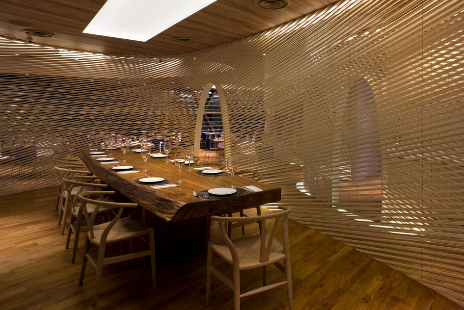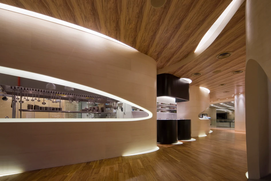 The Nautilus Project is located on the fourth floor of the ION shopping center, where opened recently on the Orchard Road, Singapore. The great strategy of the location has brought them lot of benefits as the floor composite of sales, drinks and food. Besides, the entrance of the restaurant is flanked on one side by an oyster bar and on the other side by displays of delectable dessert and trays of fresh crustaceans on ice.