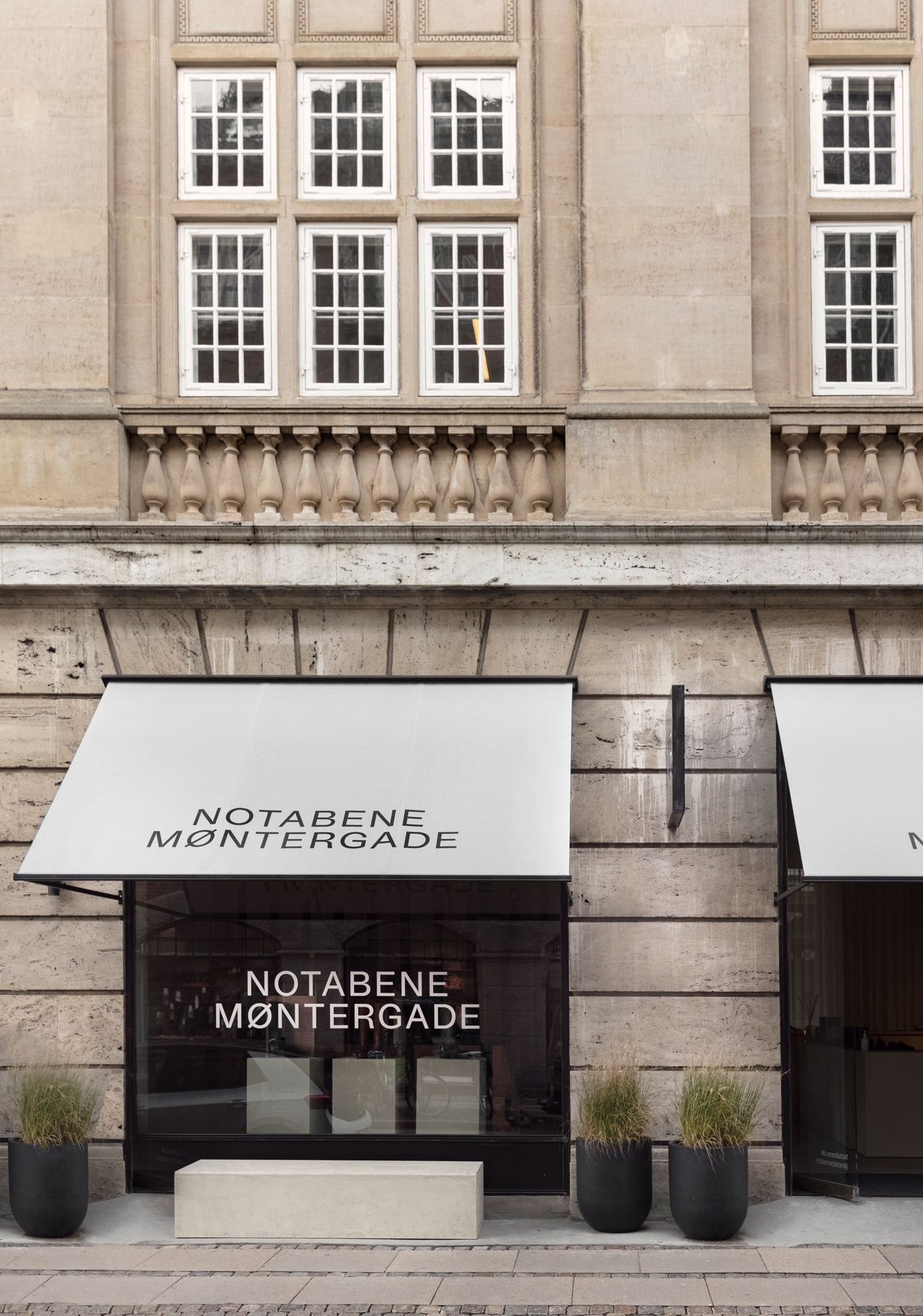 The new Notabene flagship store on Møntergade is located in one of the most exclusive areas of the old City of Copenhagen, Denmark. Entering the store, one is welcomed by a grand double-height space with exposed and tactile concrete walls, an original terrazzo flooring, striking minimalist aluminium shelves and clay podiums, showcasing the newest collection of Italian handmade shoes as delicate icons.