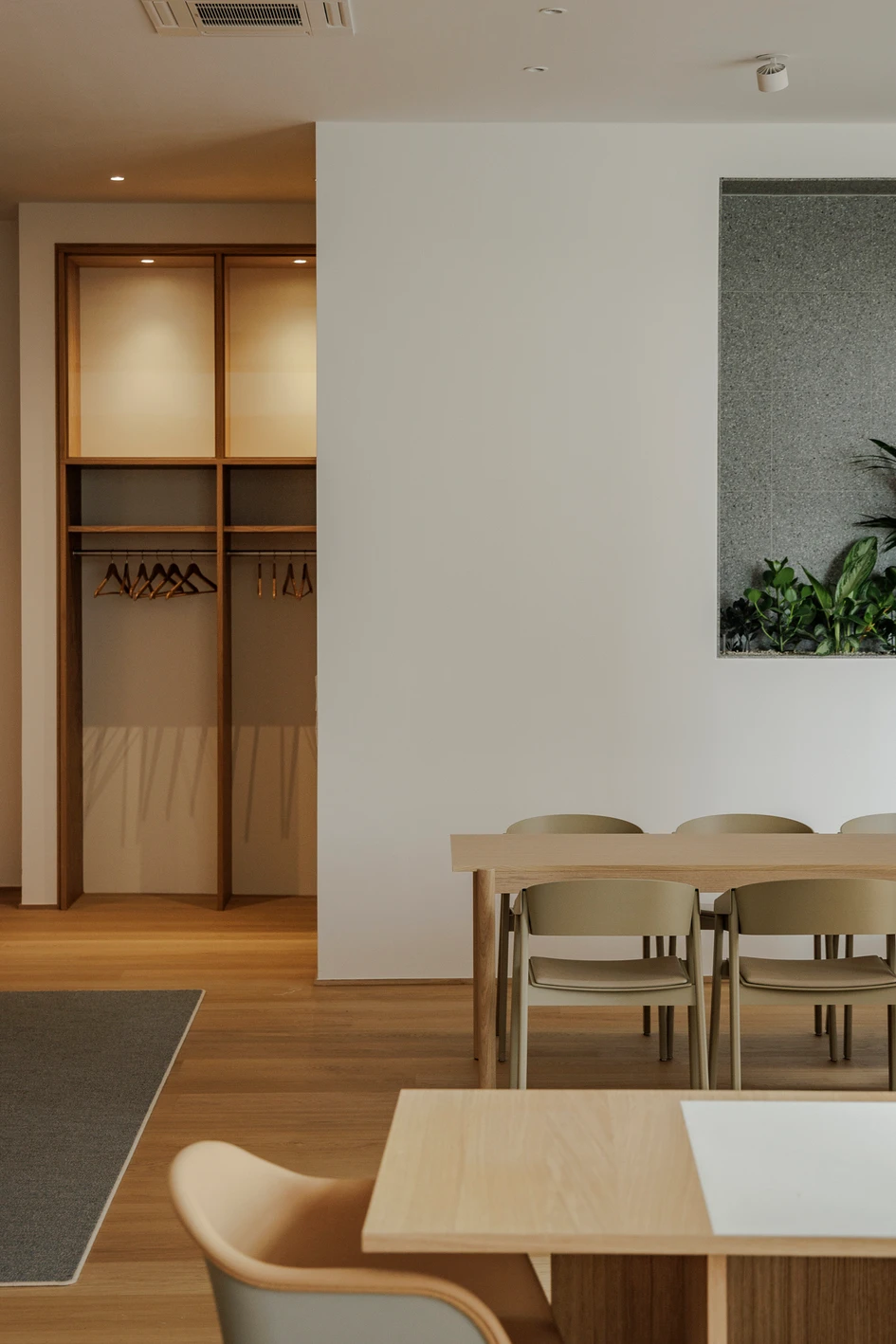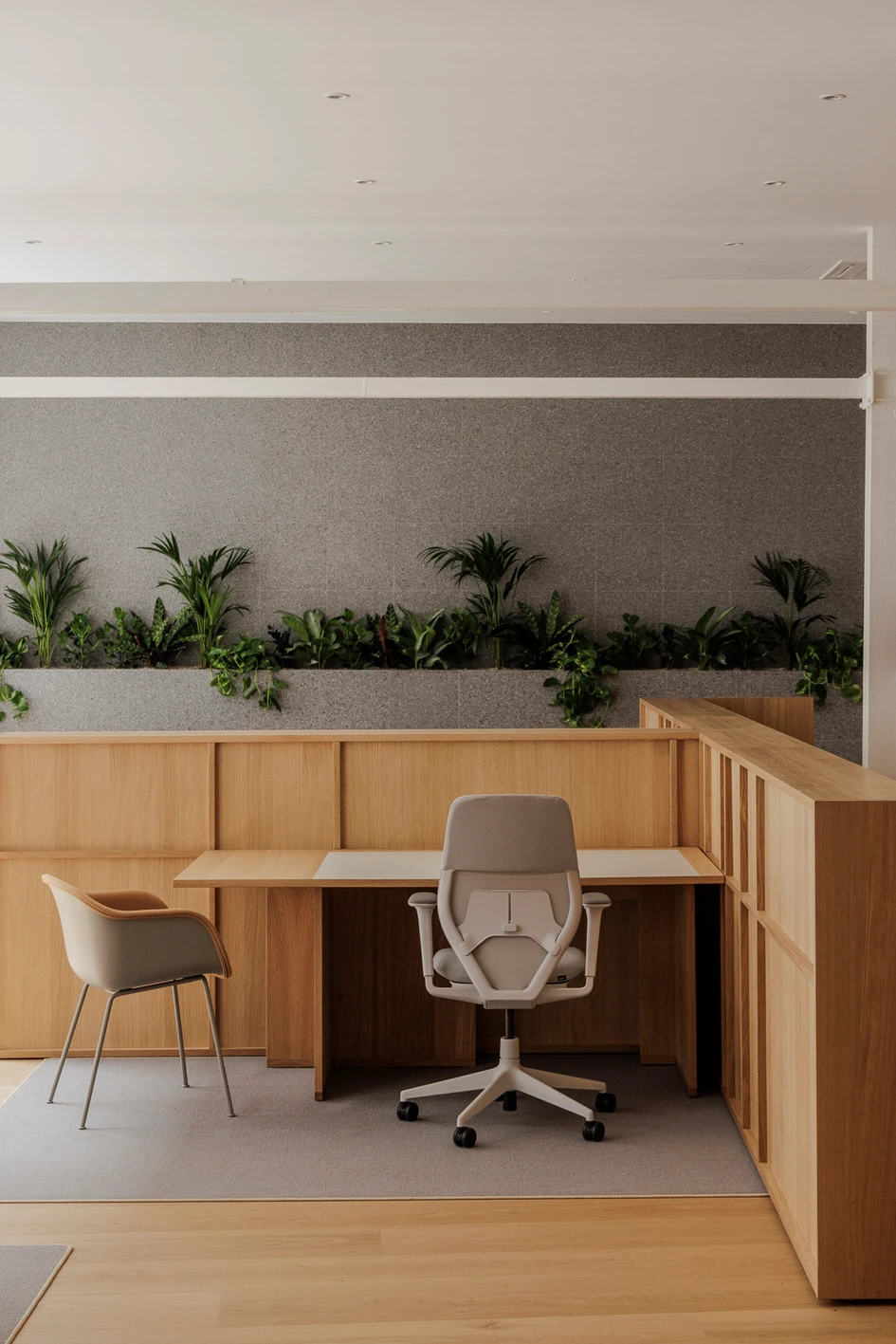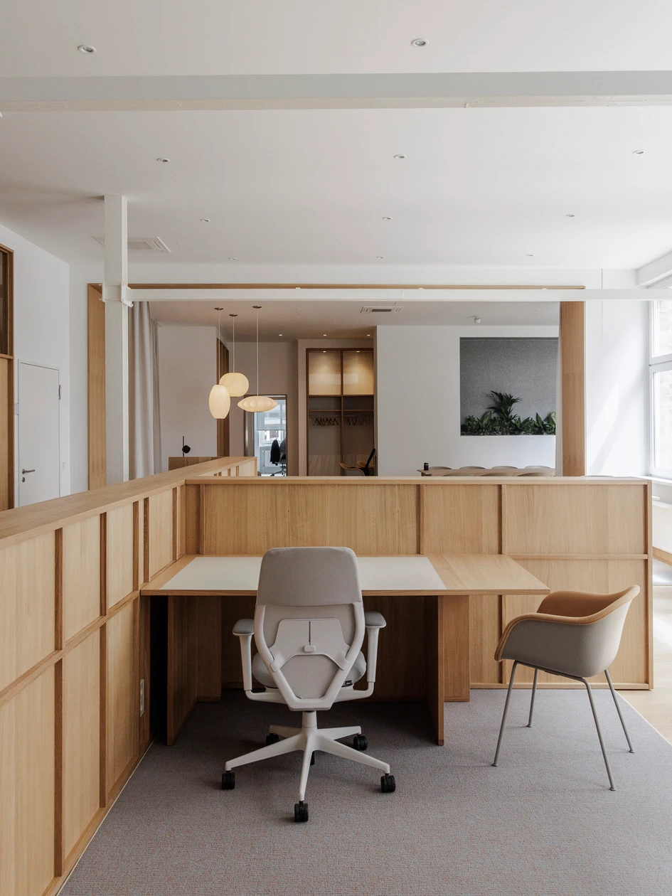 The result is a versatile and timeless workspace that combines simplicity, comfort, and a connection to nature, making it an ideal environment for fostering creativity, focus, and collaboration.