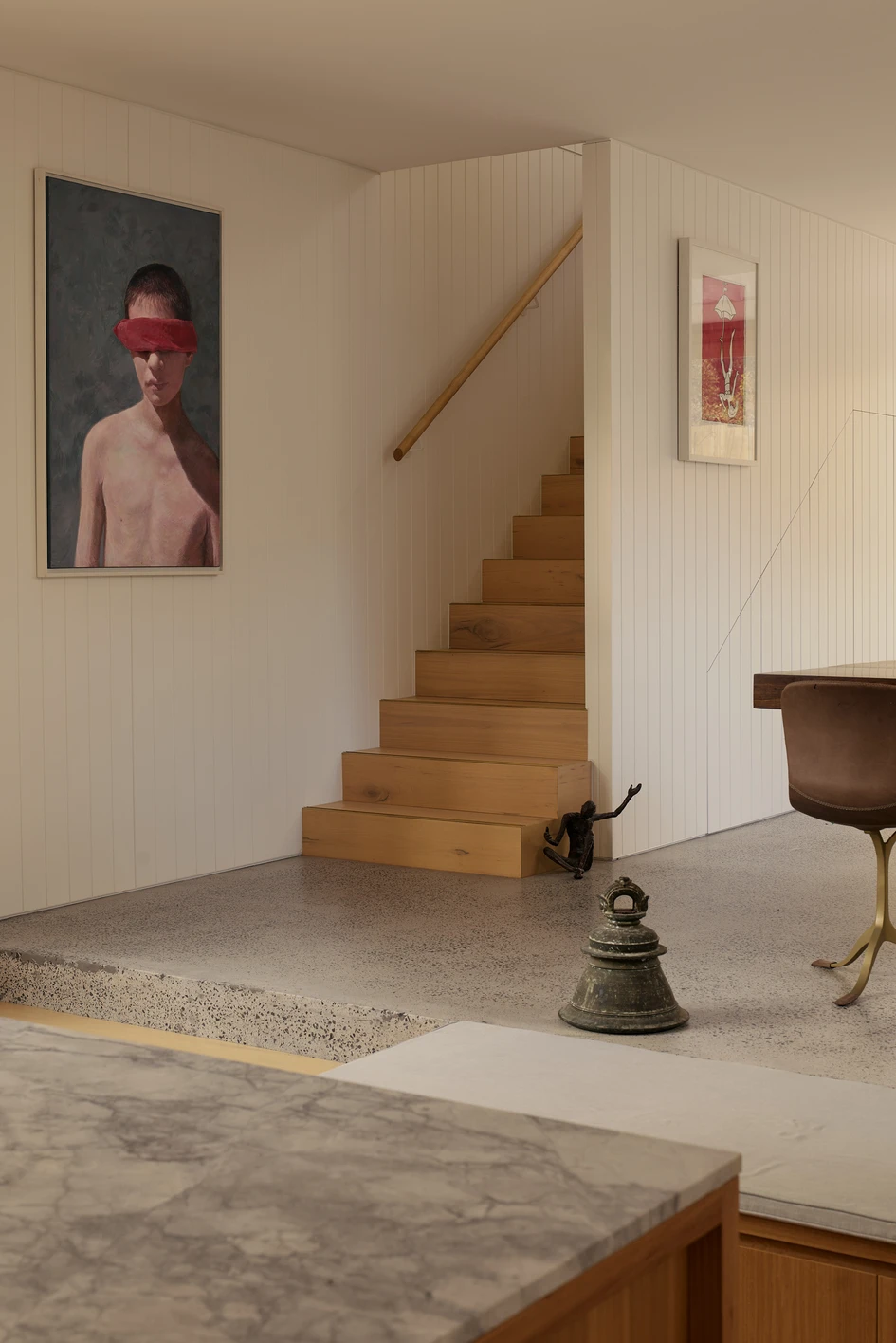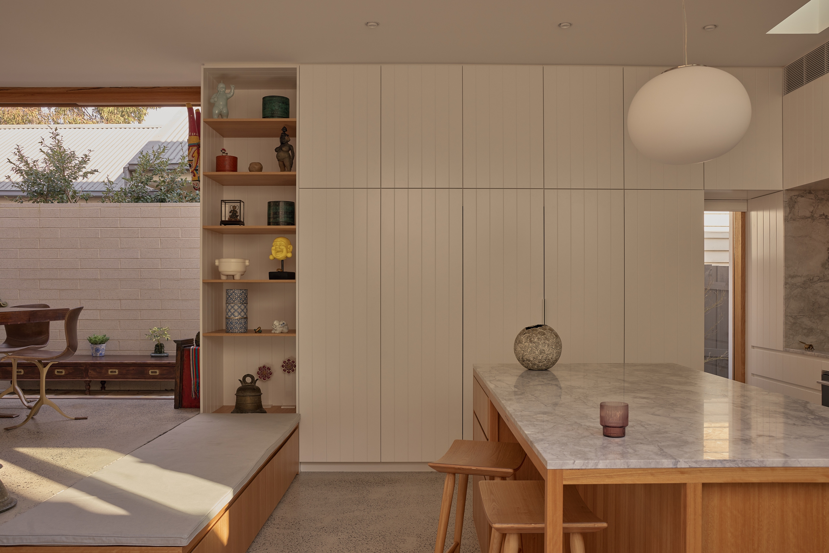This project is as much a piece of joinery as it is a building. Carefully conceived, hardworking pieces of cabinetry dissect the spaces to provide division, but also moments for our client to display a lifetime of collected curios & beautiful objects.
