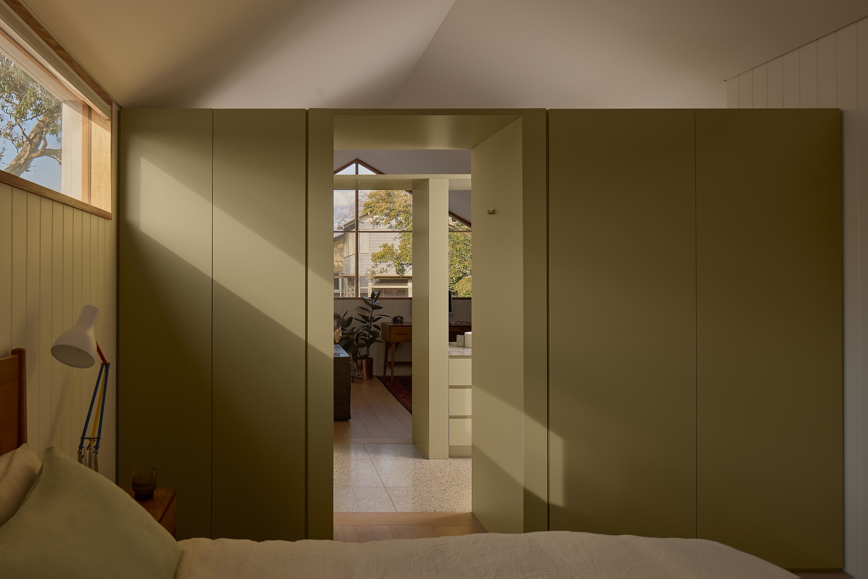 With a brief for only two occupants of the house, we were able to be playful with the levels of privacy between rooms. As a result, the upper floor is essentially one large, connected space, and the boundaries between the bedroom, bathroom and library spaces are blurred. An internal void also connects the upper level with the lounge room below.