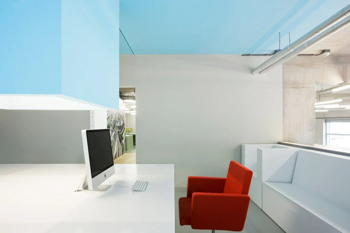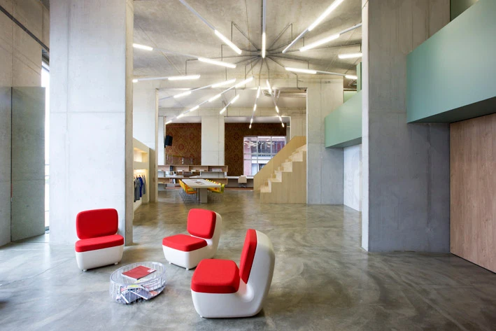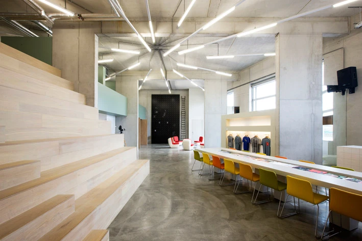 In accordance to the briefing, every single department has its own distinctive atmosphere. Mentjens’ conceptual approach guarantees that the different atmospheres come together as one world - the different areas are segregated, not isolated, and offer the possibility to stay in touch with each other, construction materials are used consistently. The informal feel the design has to it emphasizes PostPanic’s philosophy. This dynamic, inviting environment surely offers PostPanic all the required room to play.