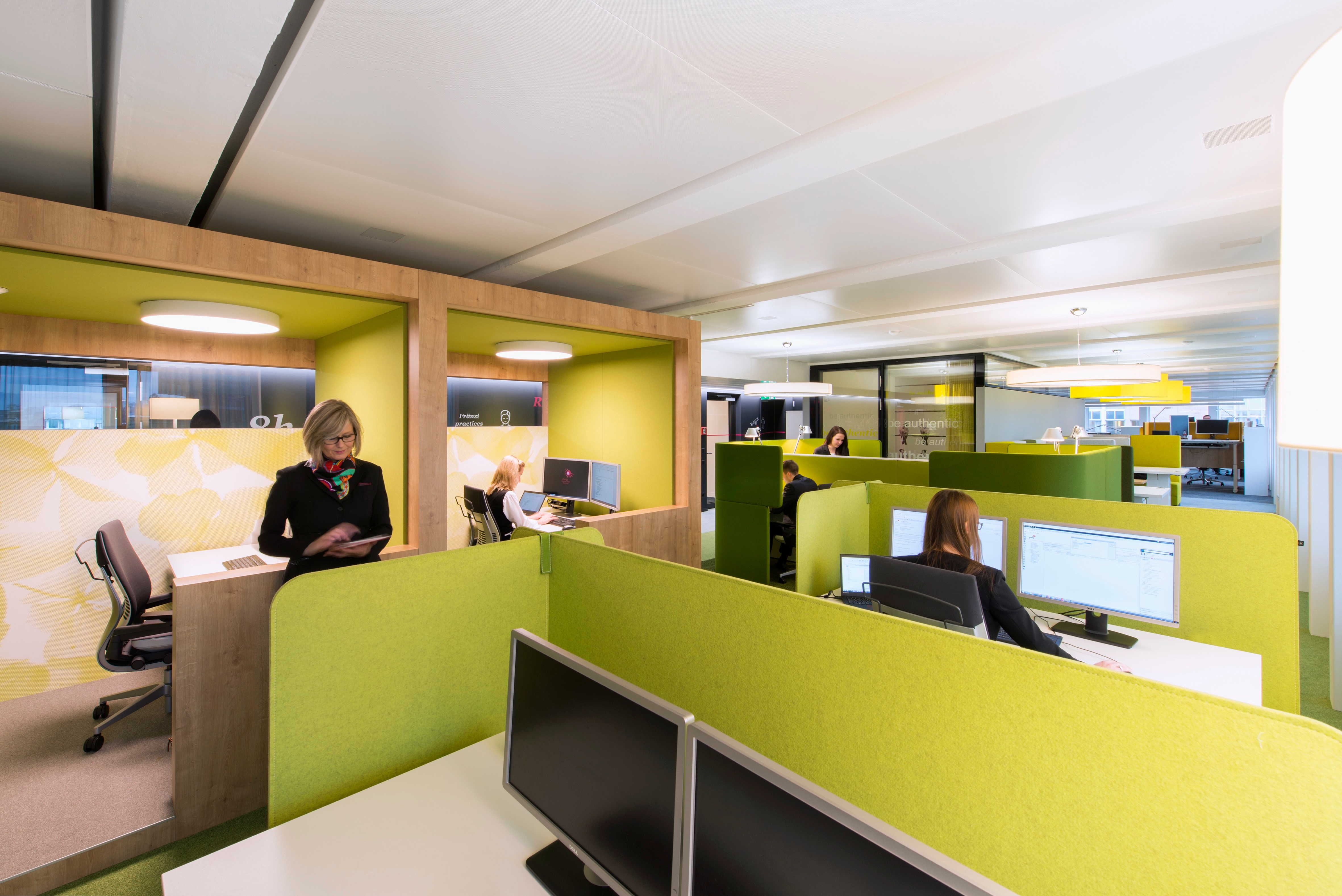 Each of the spaces is designed with cues that signify its use. The Quiet Work Area, for example, employs calm green tones and is subtly divided for privacy and to aid noise reduction. ‘We believe empowering people is the most effective way to reduce stress levels,’ says Tanya Ruegg, Evolution Design creative director. ‘The design here is all about making it easy and enjoyable for people to do a task in the best way possible. It’s functional, but also emotional – people can choose where and how to work.’