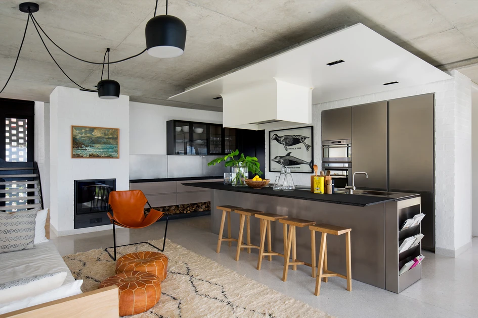 The individual open-plan rooms flow seamlessly, forming one extended living zone and central space. The welcoming kitchen and lounge area is at the centre, with a sofa in the kitchen large enough to seat the entire family. The living rooms have a direct relationship and the flow between these spaces add a unique dynamic to the house. A sense of mystery is created through the various spaces glimpsing each other.