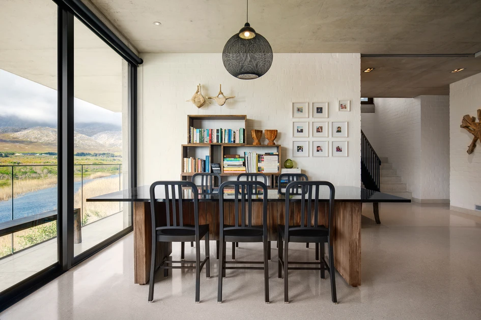 Perched on the banks of the Buffels River, close to its mouth in Pringle Bay - a small coastal town less than 100km from Cape Town, South Africa - this house has an easy living permanence that shakes off the salty winds and lets in the sun and the natural beauty of the surrounding indigenous vegetation and mountain valley.