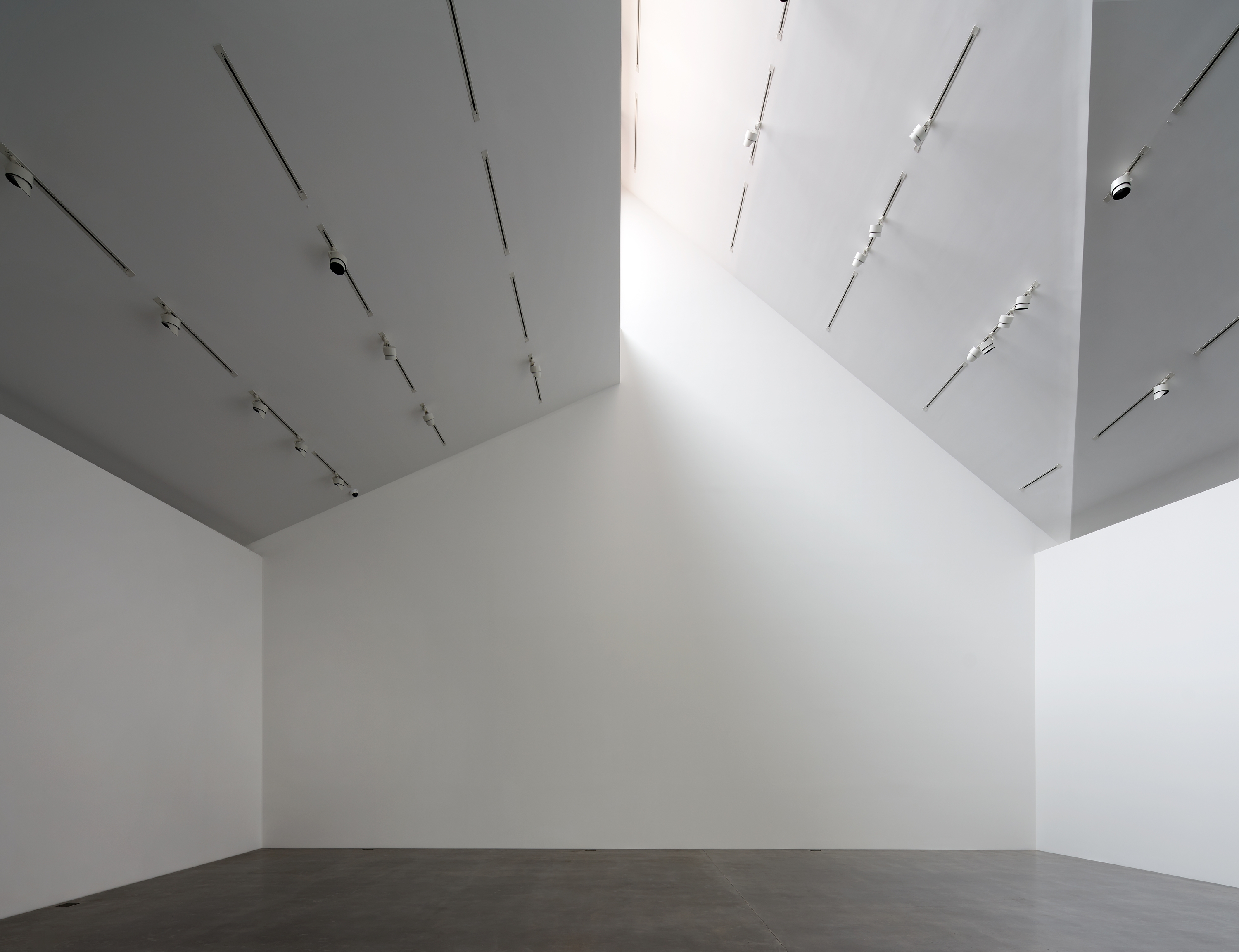 The building is conceived to be experienced as an ambulatory loop: from the ground, up and through the independent gallery rooms, and back down returning back to the lobby and plaza. The exterior form consists of a ‘heavier’ top with sloping soffits, emphasizing its upward lift, topped with two crowning lanterns that create an animated roofline. The lanterns, in turn, bring natural light into gallery spaces, when desired, and coupled with the two lenses facing Chris Park and San Pedro Creek, respectively, reintroduce views back to the exterior and San Antonio at large.