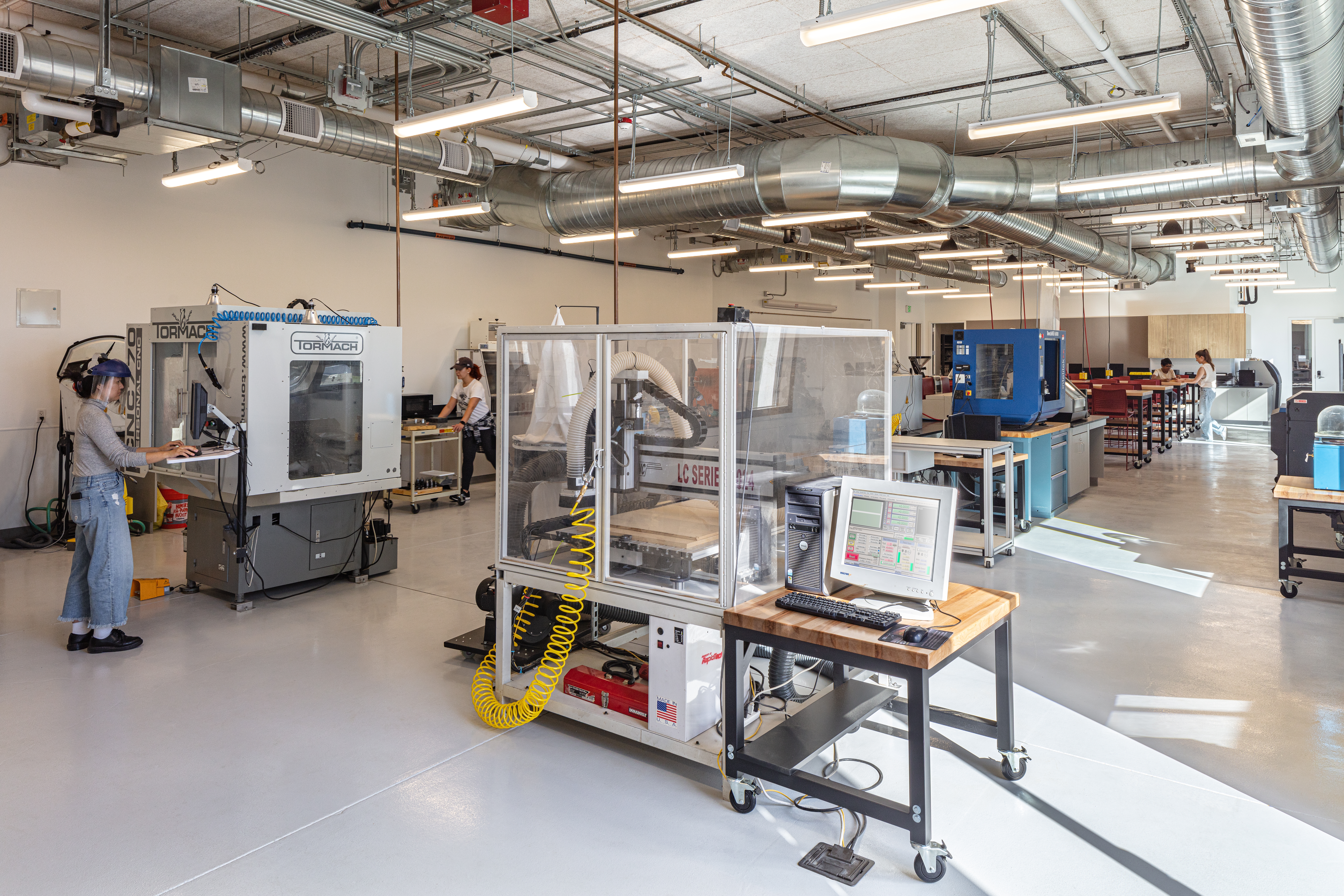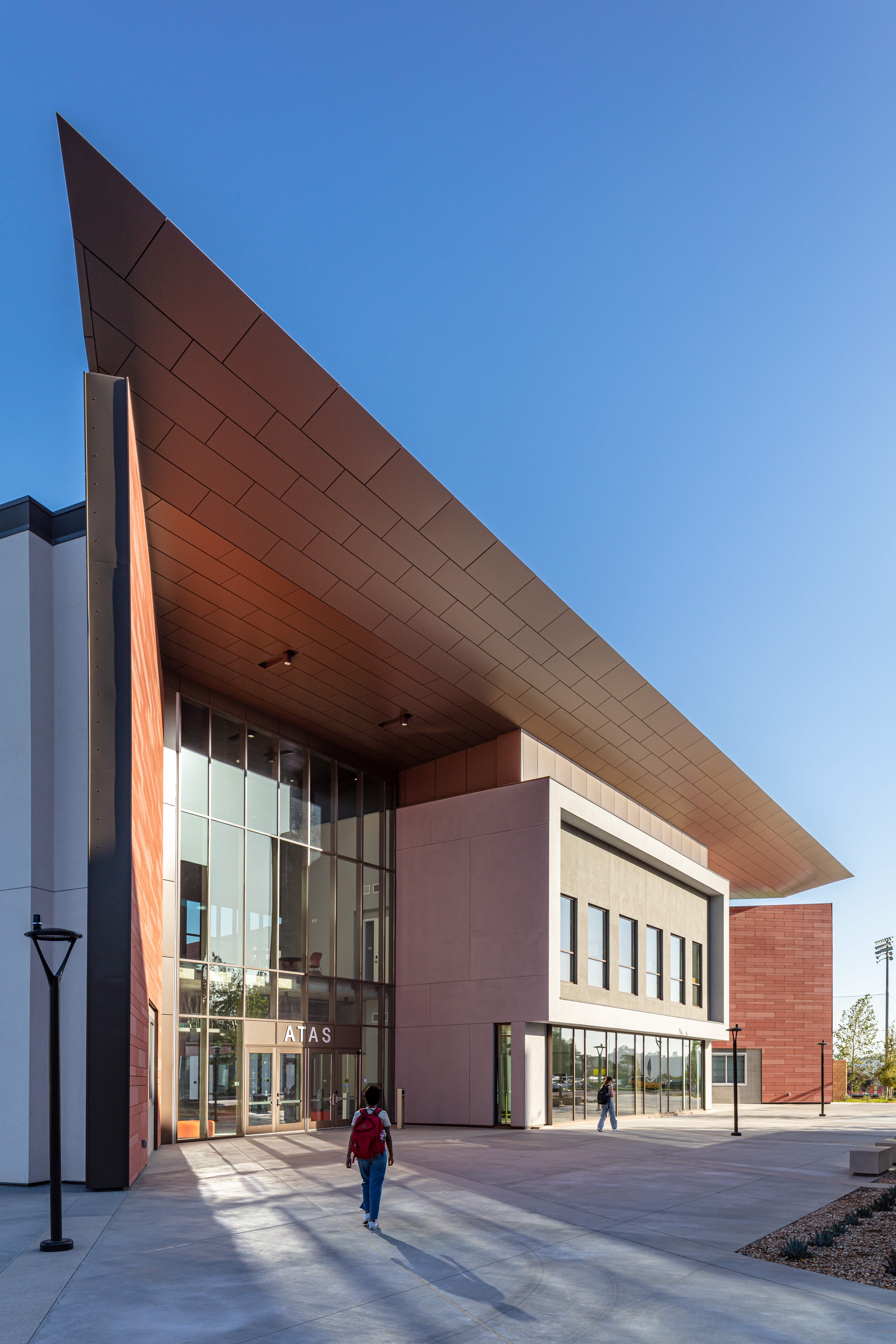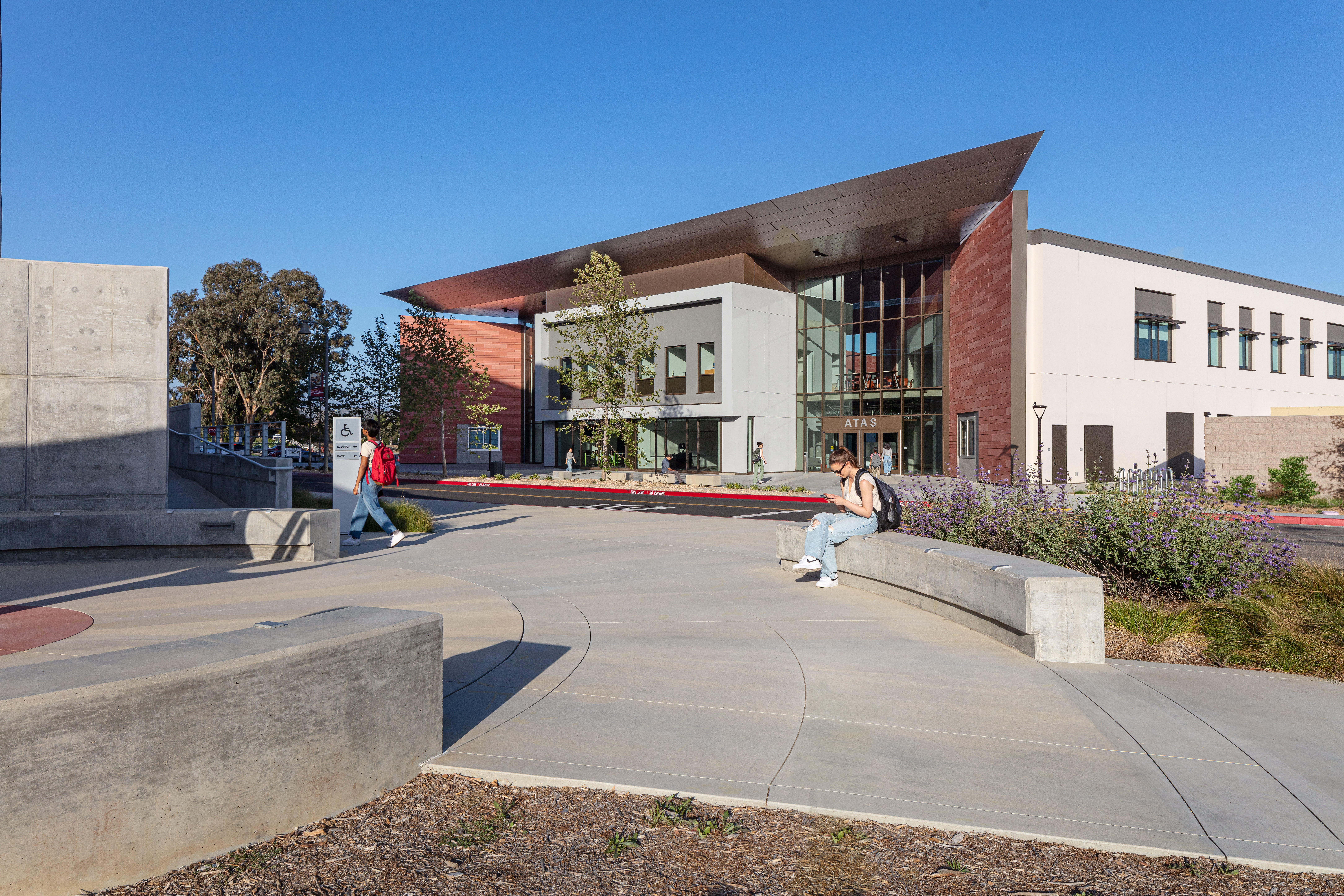 The new Advanced Technology and Applied Science (ATAS) building at Saddleback College is a 52,100 SF facility that supports multiple modalities of learning (visual, auditory, kinesthetic, tactile) in career technical education (CTE) and more traditional disciplines. Here, students and the community are invited to engage in a space where creativity and creation are on display, encouraging a sense of connection and belonging among students, the campus, and the community.