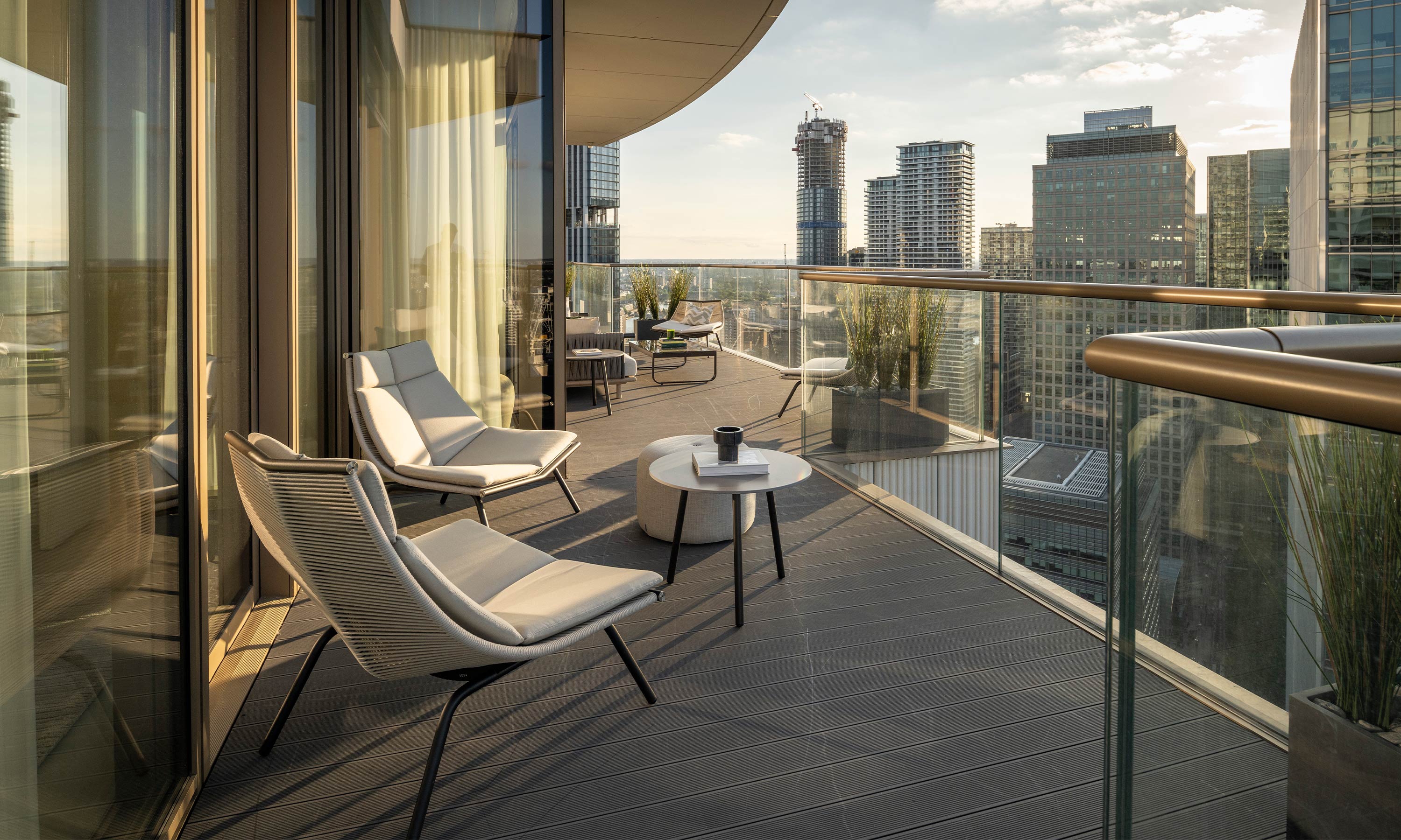 La torre circolare è vista da tutti i lati, sia dalle strade di Canary Wharf, dal nuovo lungomare e dai corsi d'acqua che lo circondano. Situato al livello 32 di One Park Drive, lo Sky Lofts è una collezione unica di appartamenti, che dispone di terrazze avvolgenti, che offrono viste mozzafiato sugli altri edifici iconici di Canary Wharf e sui monumenti di Londra.