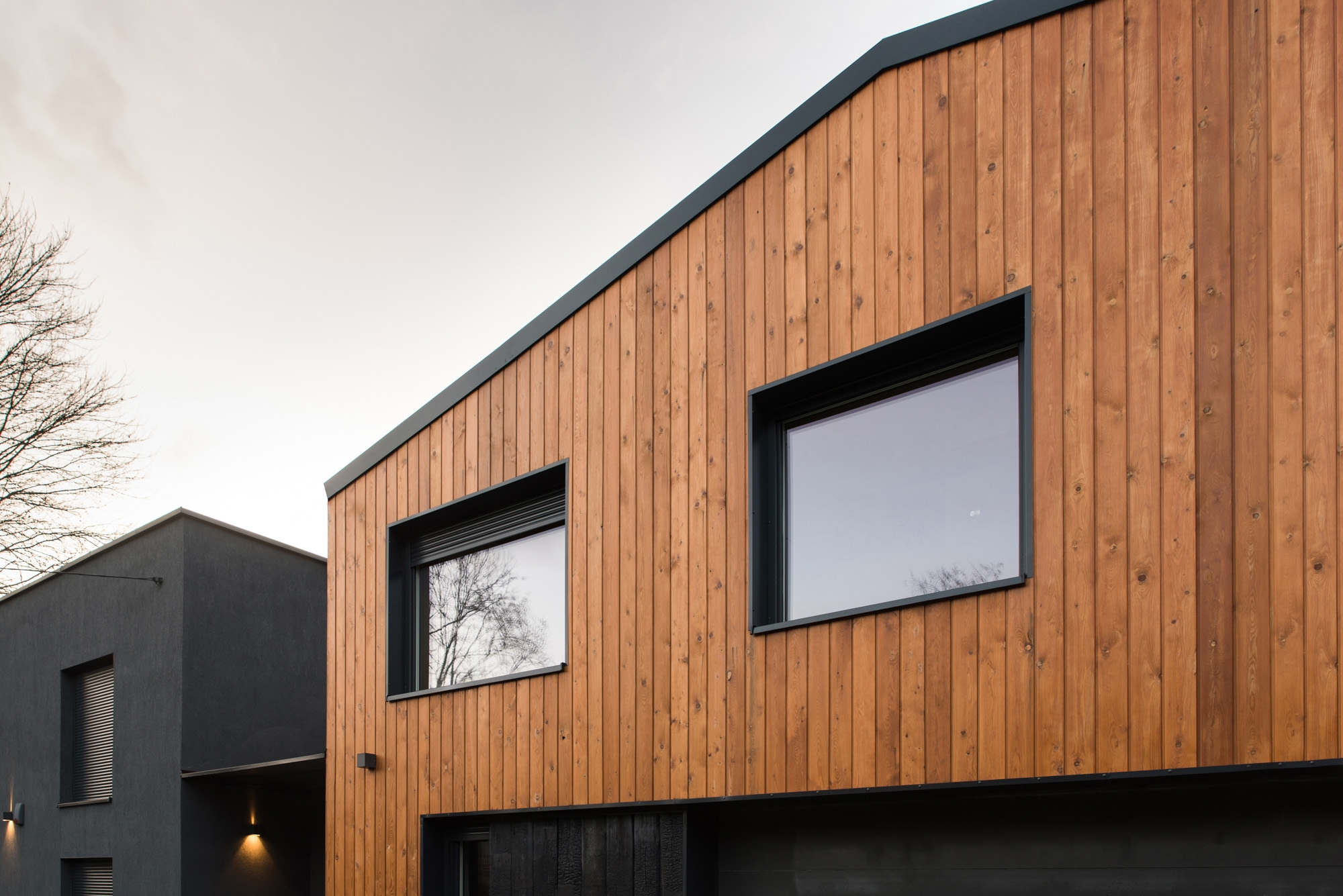 The main structure of the building was shortened by four structural fields, of which two fields formed an external terrace, and another two made room for a double-height living room. The original structure and shape of the barn is clearly visible from the living room, where we have an exact cross-section of the building in the form of a mezzanine.