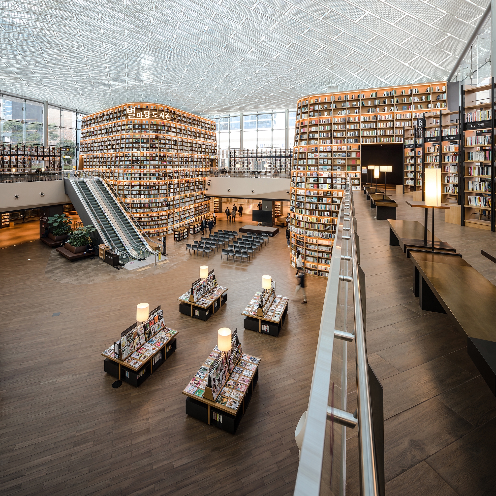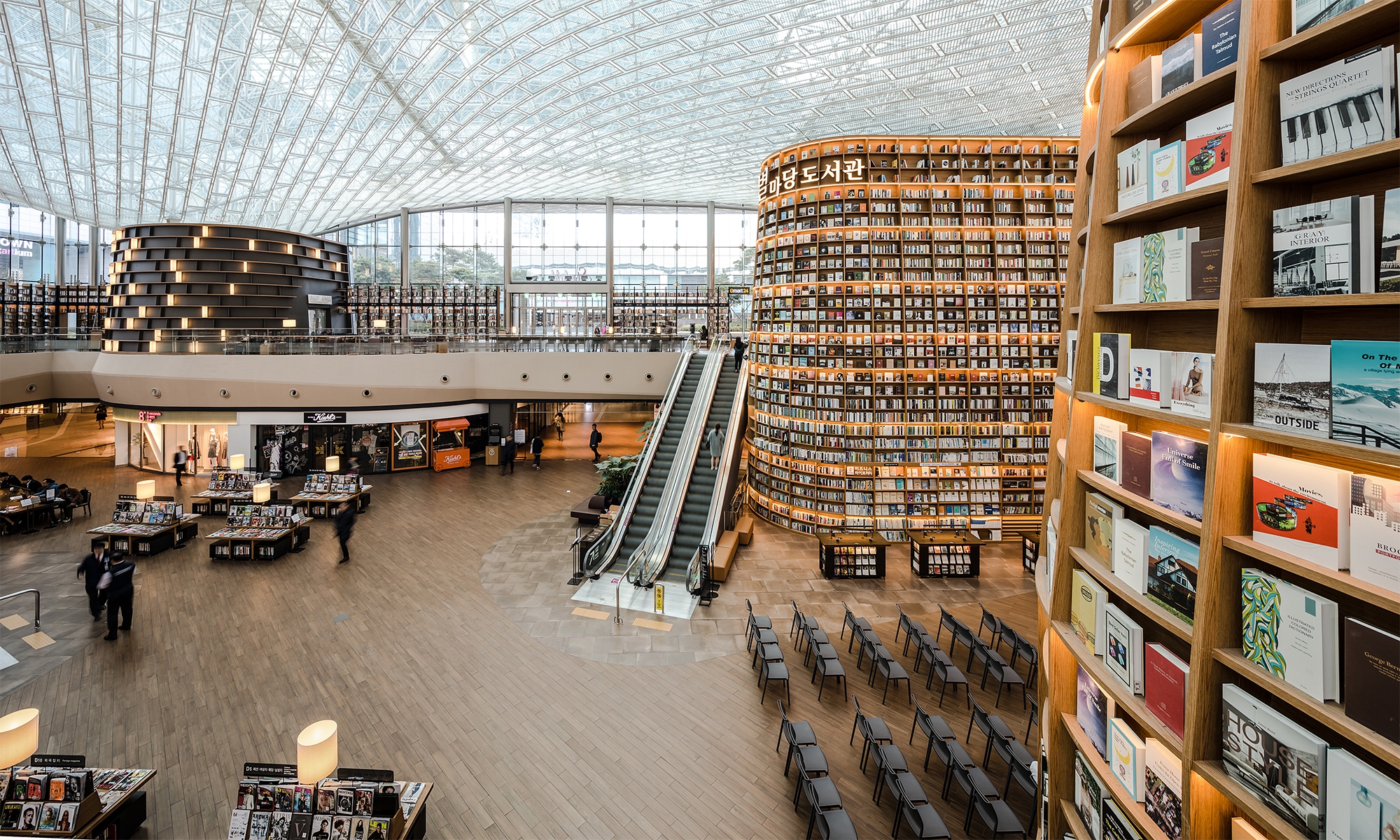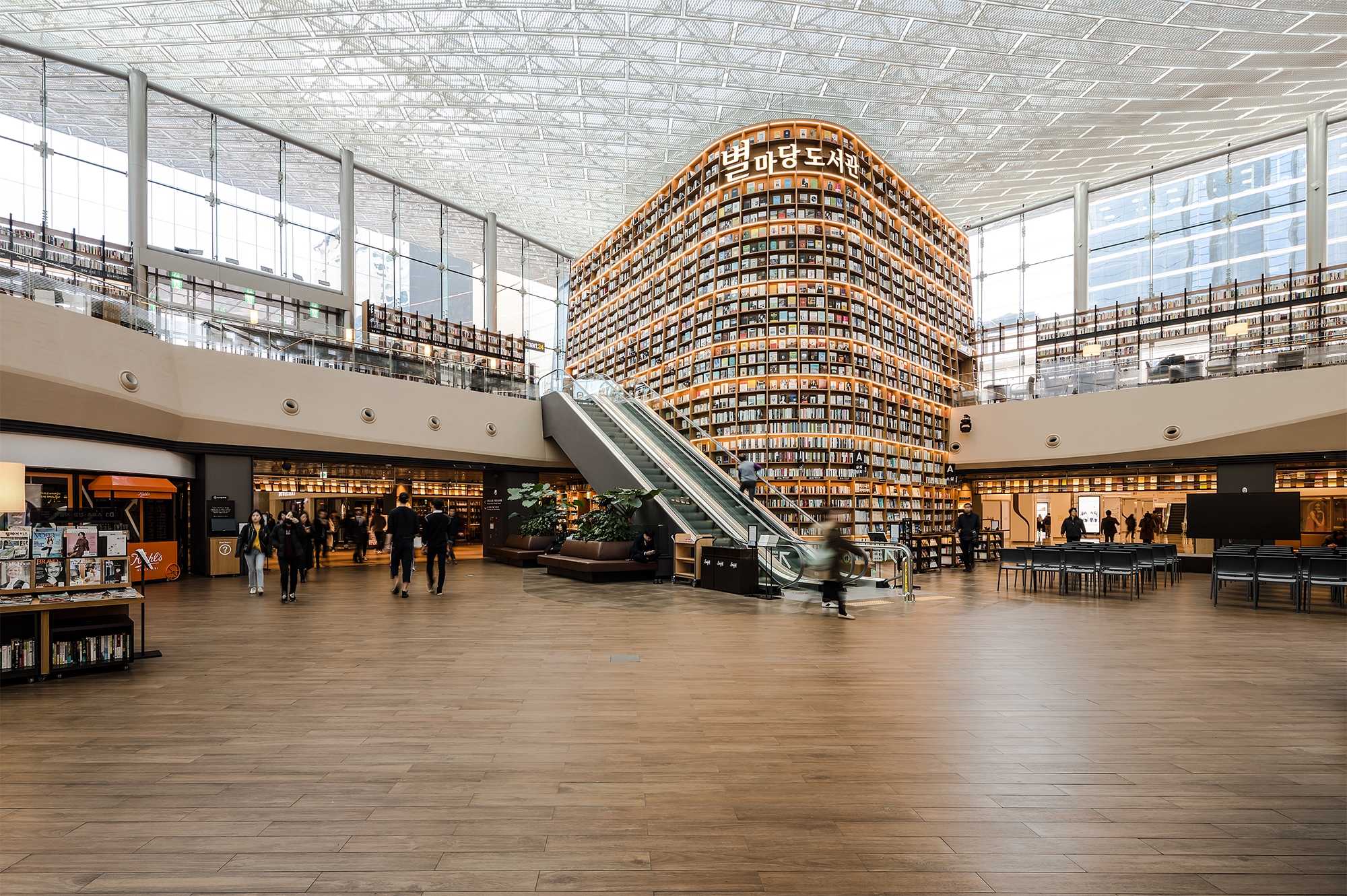 Nel centro commerciale Starfield COEX Mall di Seoul, il più grande shopping centre del continente asiatico, è stata da poco inaugurata un’enorme libreria, la Starfield Library: organizzata su due piani per un totale di 2500mq, la struttura raccoglie oltre 50 mila libri e 600 mila riviste internazionali