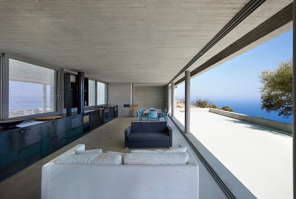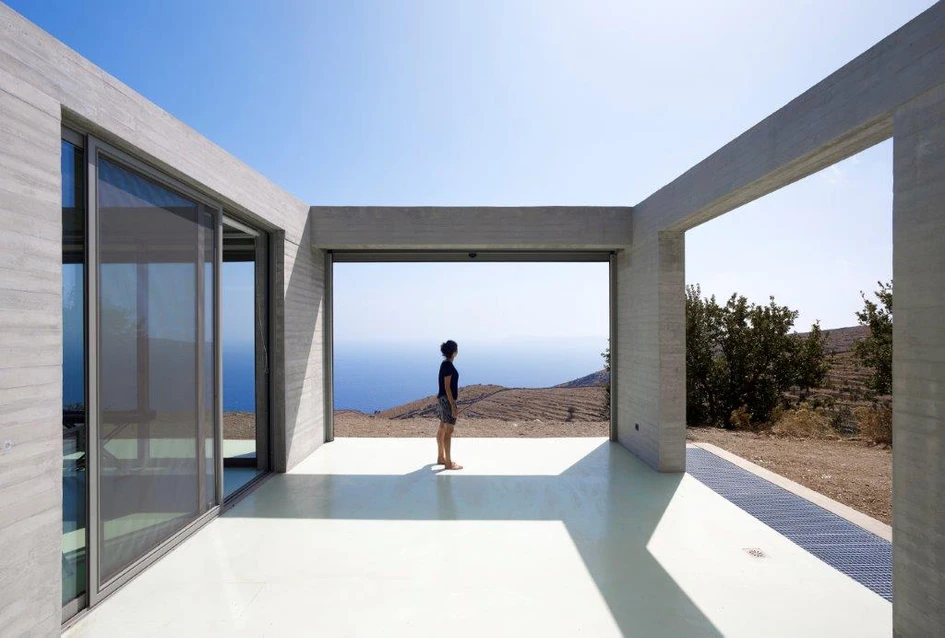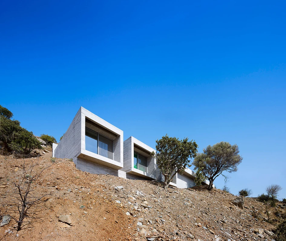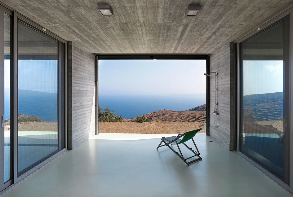 ‘Parallel House’ is an architectural volume organized as a sequence of partially covered or completely roofed rooms, overlooking the sea. The volumes of the rooms create images of cinematic aesthetic in the visual context of the Aegean sea and the neighbouring islands.