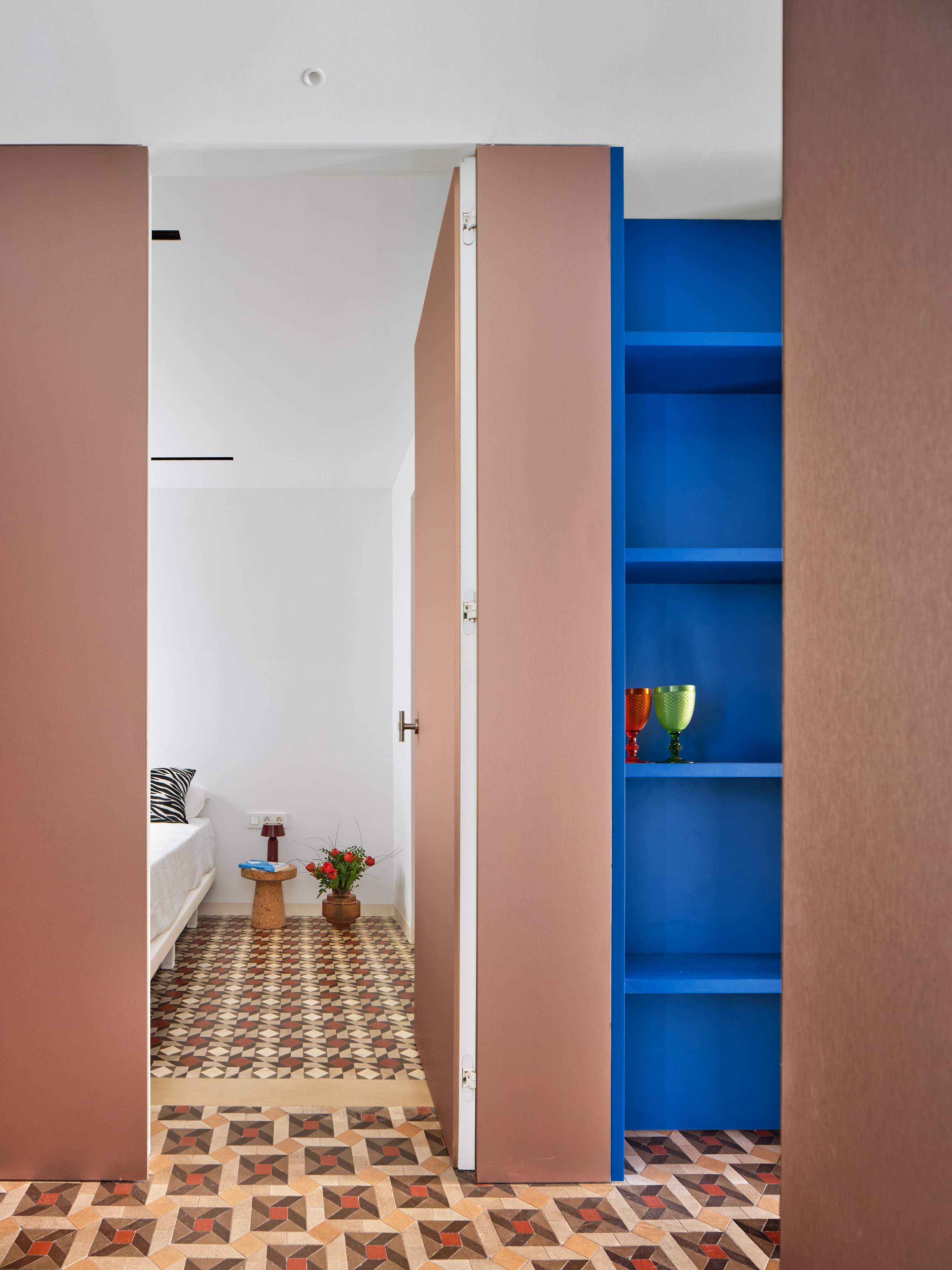 Raul Sanchez ArchitectsThe existing apartment, measuring 85 sqm, is the result of the division into two a large apartment with two opposed façades to Enric Granados Street and a generous interior courtyard in the Ensanche Derecho of Barcelona. The outcome of the division distorted the original flat, which enjoyed its access at its center. Now, the access is located at the interior end of the apartment, driving the natural flow towards the exit to a spacious interior gallery room overlooking the big interior courtyard. The existing flooring, consisting of a rich variety of ‘nolla’ mosaics with drawings and colors of great value, was preserved.