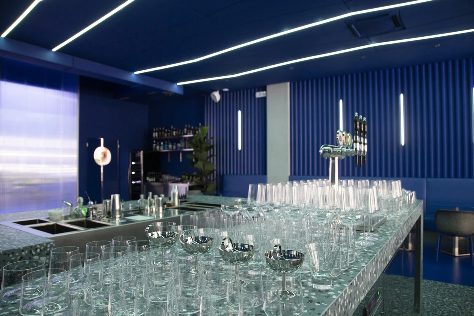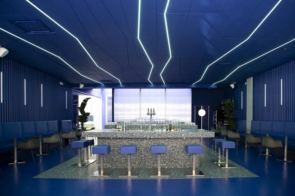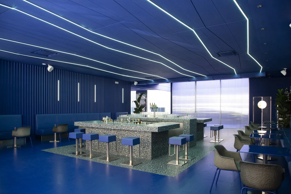 Turbo Milano è un mixology bar contemporaneo situato nel cuore di Milano, uno spazio del tutto originale, innovativo, sostenibile e…blu! Il progetto, curato dall’Architetto Davide Gernone, nasce dalla voglia di riplasmare il modo di fare ristorazione e di viverla, inquadrandola in un ambiente che ne rivede le prospettive. L’arredo ricercato con eleganti finiture di pregio fa da cornice ai commensali, i dettagli tecnologici ne completano l’atmosfera.