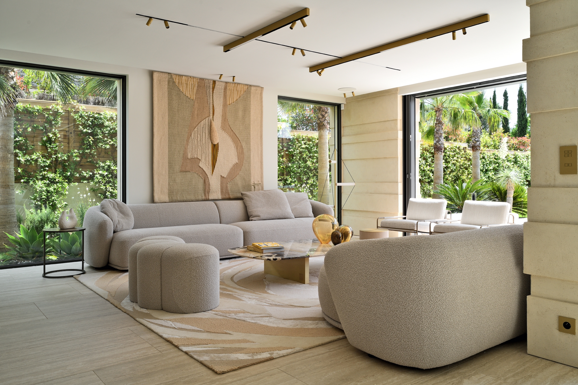 Gli arredi Meridiani, selezionati con cura dallo Studio Dorga David Burles, disegnano e impreziosiscono con spontaneità la naturalezza di ogni spazio.