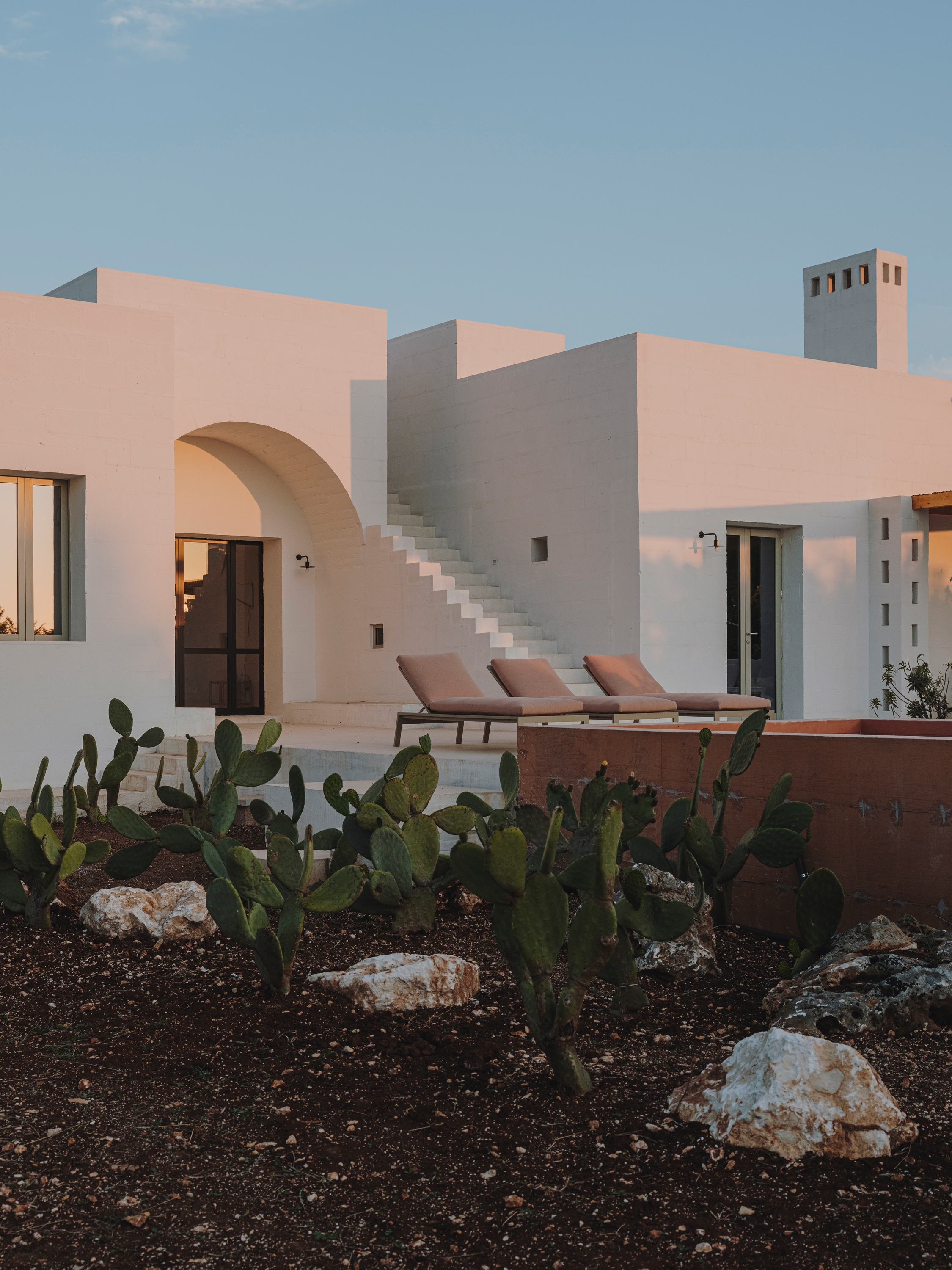 Villa Cardo is a 3 bedroom house designed by Studio Andrew Trotter, who designed Masseria Moroseta. Like the masseria, Villa Cardo has been built with local materials and using traditional methods of building, to ensure the Pugliese vernacular shines through, keeping the building light, airy and cool in the summer.