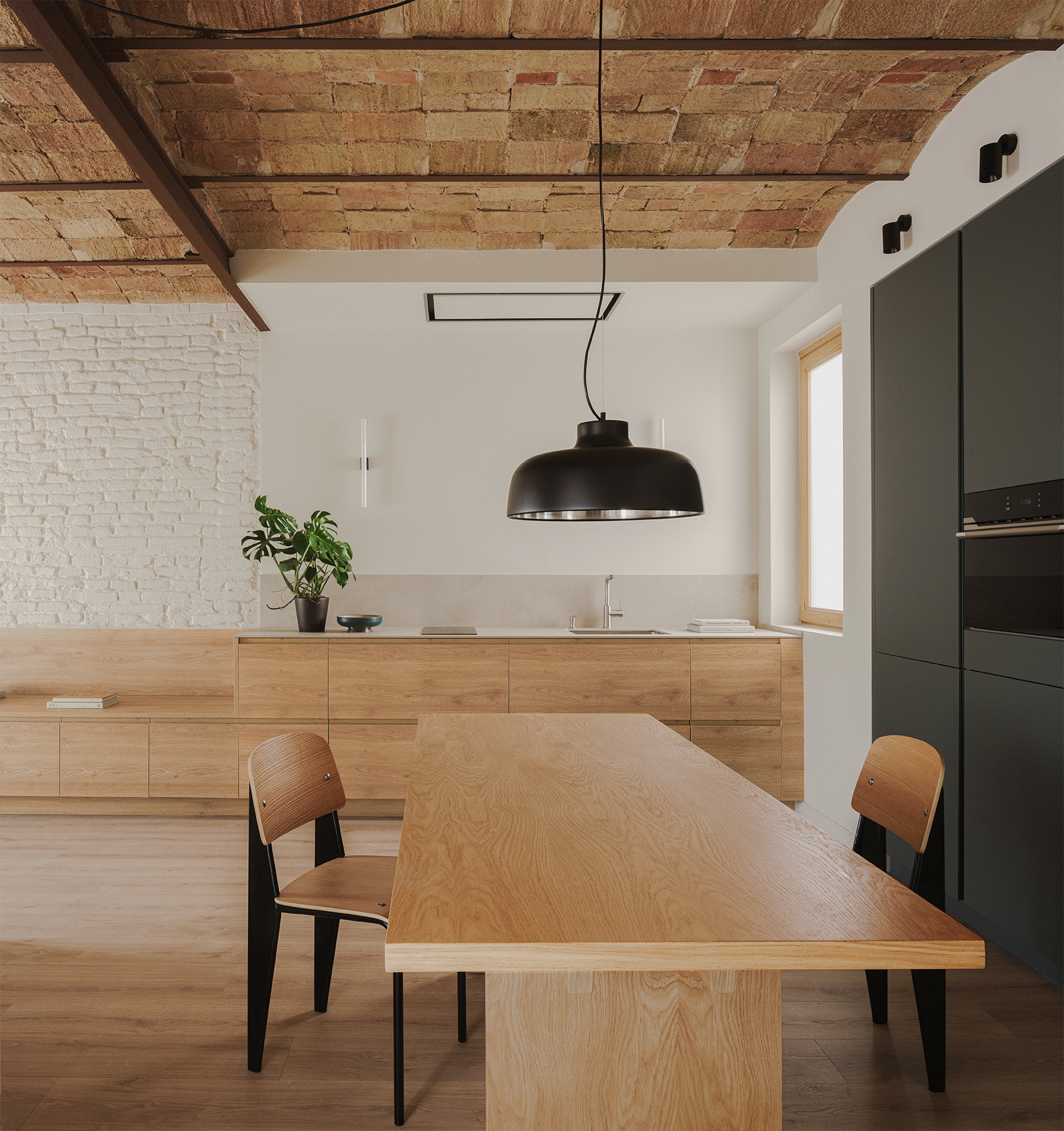 The final result is an efficient and comfortable space where the original architectural elements have been preserved. The combination of modernist elements with wood, greenery, and earthy tones created a warm, personal, and authentic atmosphere that quiets the vibrant stress of the city.