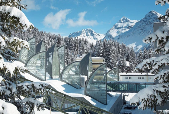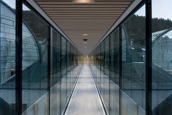 The different areas of "Berg Oase" are characterized by their interrelation and privileged relationship with the environment through technological trees that guarantee natural lighting, an extraordinary sight towards the landscape and, at night, they are the signs of the in-house life of the resort which, through artificial lighting, gains a magic atmosphere.