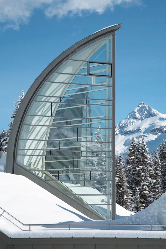 Arosa offers an extraordinary geographic configuration of natural basin surrounded by mountains. We imagined to build without building, to assert the presence of the new through the emergent parts (artificial trees as metaphor of the nature) and to leave interred the great volume with the functional program. The cover of the hypogeal spaces becomes a stage marked by geometric vegetal presences that rouse the visitor curiosity.