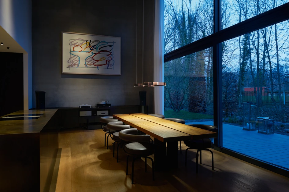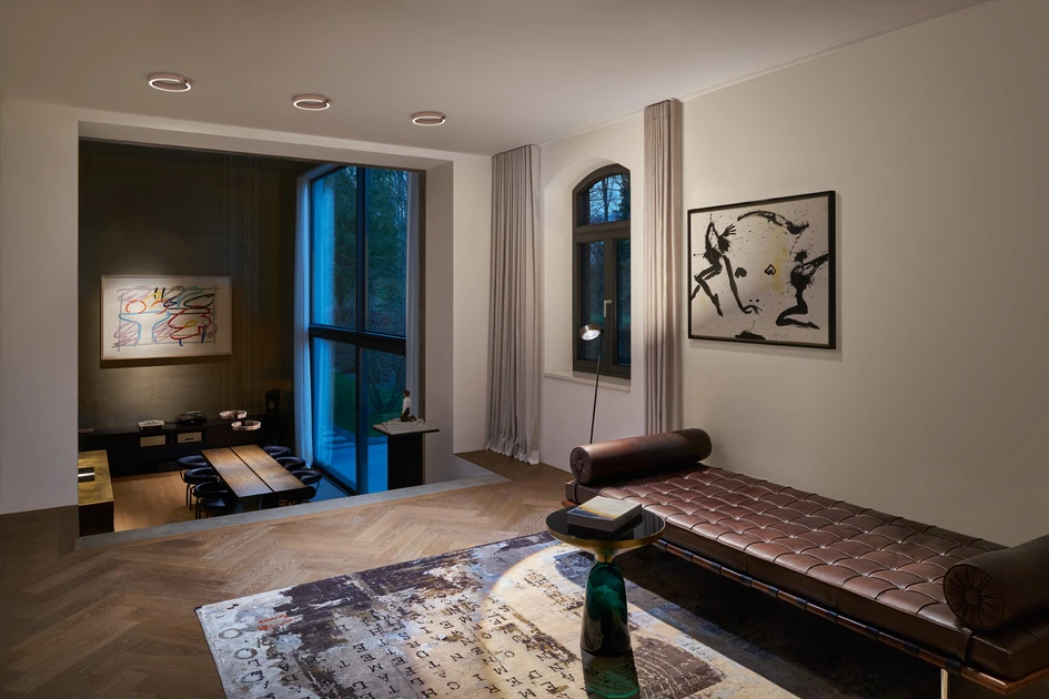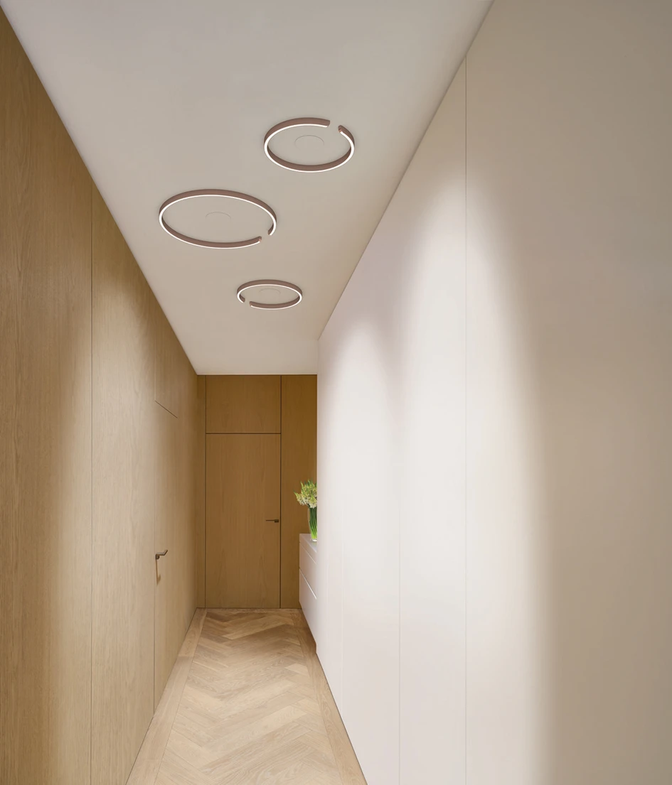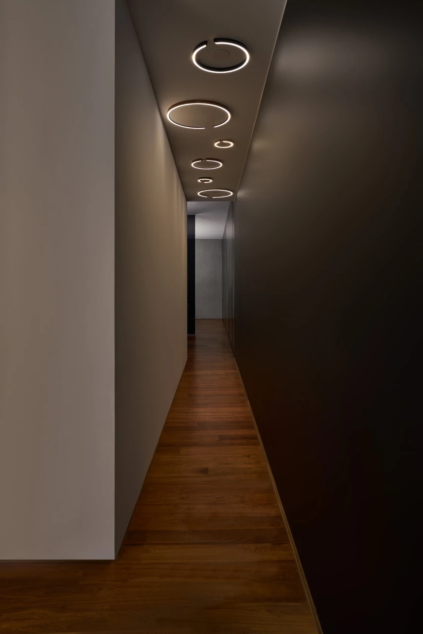 The lighting is an integral component of the interior design concept, creating a feeling of both excitement and calm. The high quality surfaces of the Mito soffitto and sospeso luminaires form a perfect unit with the natural materials wood, natural stone and leather. Artistically crafted like gems, the Mito luminaires serve as decorative elements and thanks to their unique features make a decisive contribution to comfortable living. For there is not only the possibility of dimming via app or gesture control but also of changing the color of light and thus the whole atmosphere in the room.