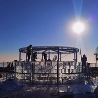 Professional architects from BIAD, who also designed Qatar World Cup Stadium, oversaw the design process, and an ice sculpture team from Harbin Ice World was brought in to create the structure. The structural guidance team at the BIAD has designed several spoke-wheel self-anchored cable structures in recent years. These structures resemble a conical hourglass suspended from a circular wall, with all the cable's forces anchored in the ring beam around the cable like a self-balancing bicycle wheel. Hourglass created a miniature replica of the Lucerne Stadium's cable membrane structure in response to this concept. The membrane at the base of the spokes and the ceiling are supported by a pressurized spar located at the hourglass's center. The membrane surface is comprised of a PTFE mesh laminate that strikes a compromise between strength and light transmission, and it, together with eight cables, is responsible for transporting the sand in the hourglass down the bottom half of the spokes. ETFE membrane, also used in the Water Cube(National Swimming Center), covers the top half of the spokes, providing the necessary light for the installation.