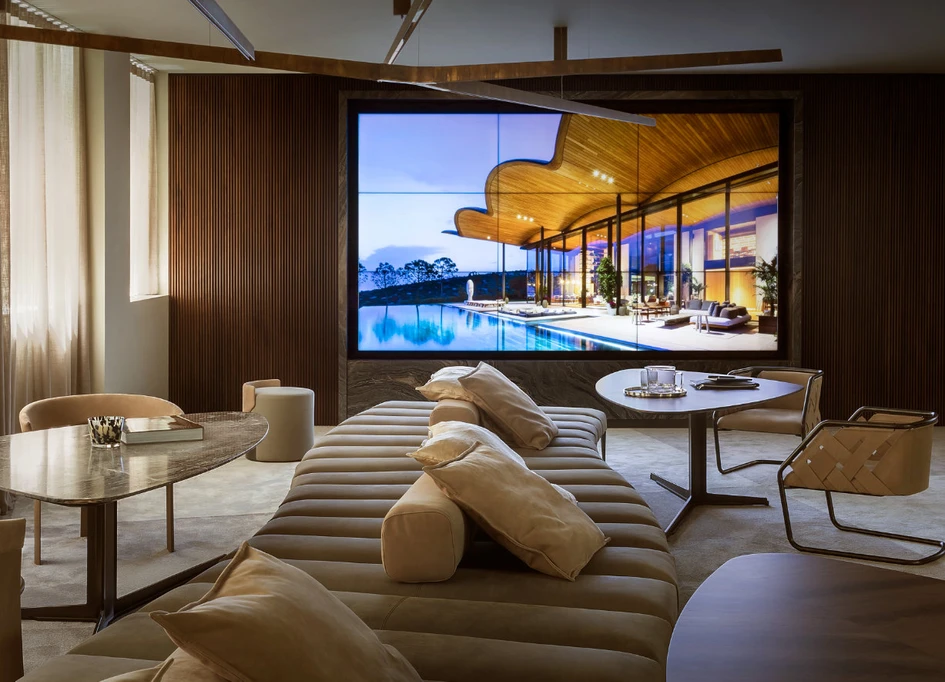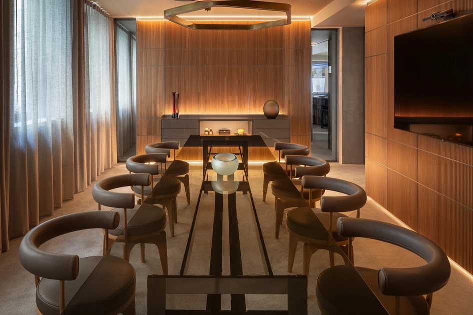 The ground floor showroom brings design directly to the customers; people can interact with over 200 prestigious Italian and international design brands. On the first floor, things get even more personal. The space has been designed for Interni’s Creative Team clients to plan projects in depth to the highest standard. Moodboards begin in the Material Gallery where all available materials for custom interiors are on display. Further planning plays out in the various sized Project Rooms equipped for both physical and virtual meetings.