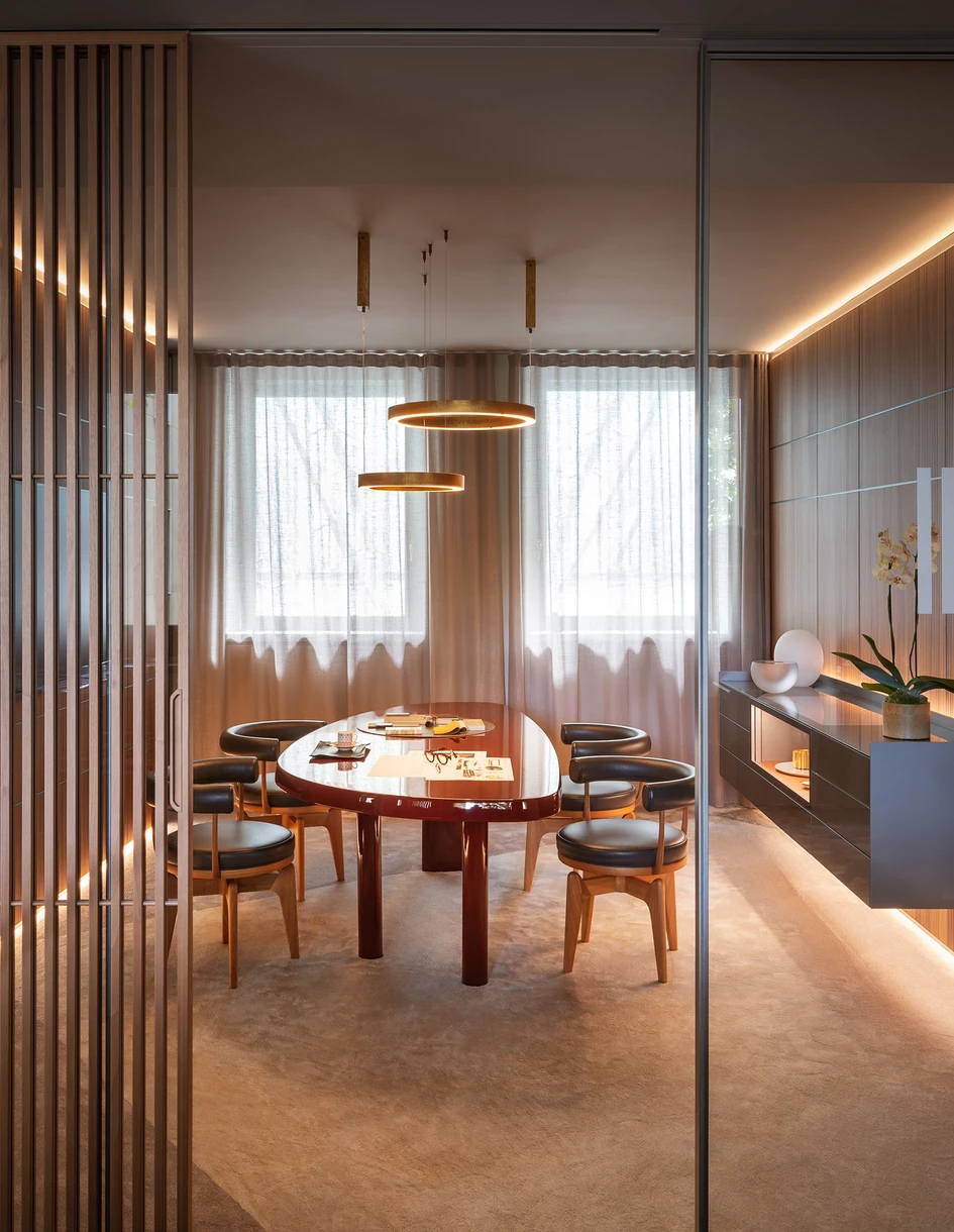 ‘Interni has evolved into a brand that offers a range of services that extend far beyond sales. Our team is strategic in supporting designers, architects and private clients on design projects from villas to apartments, orchestrating everything from boiserie and coverings, to fixed architectural elements and custom-made pieces. When highly customised solutions are required, we respond with tailor-made interventions,’ says Stefano Cazzaniga, Interni CEO and third-generation relation to Leonardo.