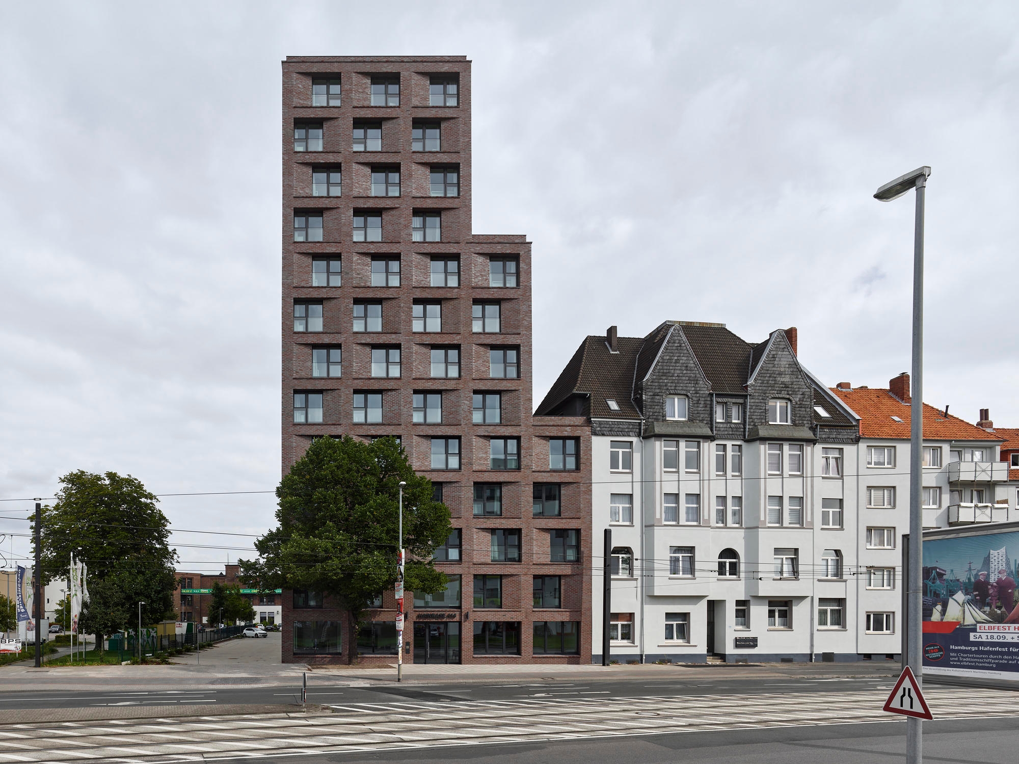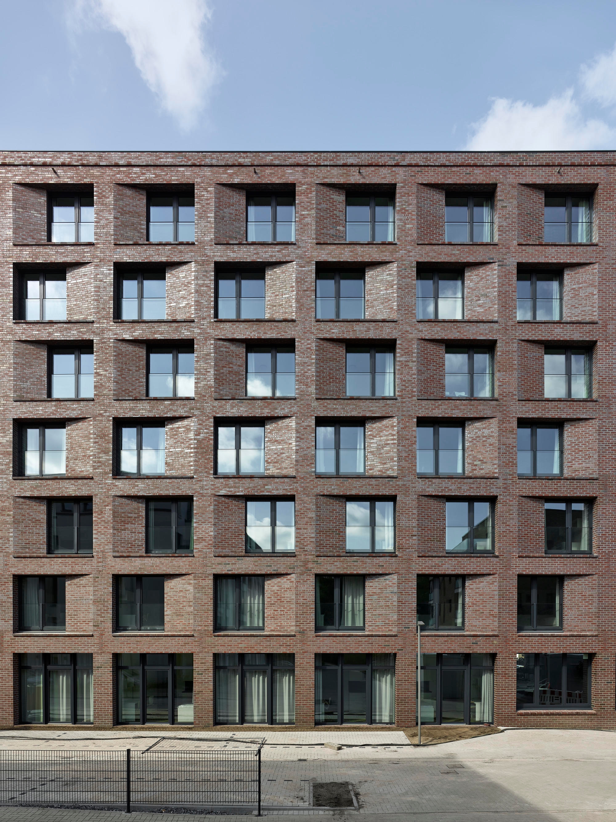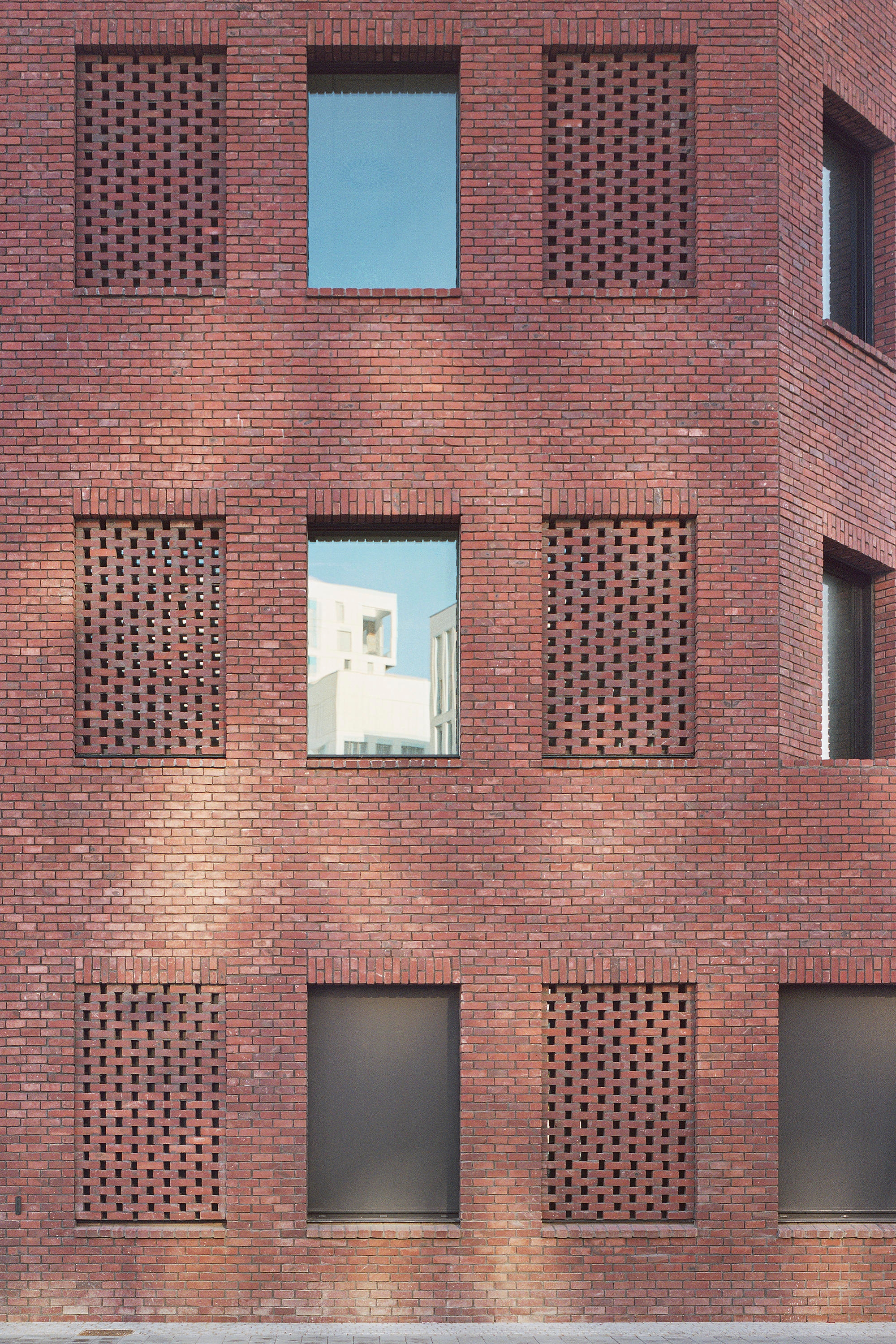 In Hannover, Max Dudler uses the humble brick to create a robust, regular façade for ‘Hainbase’, a student residential building in Hainholz. Reflecting the uniform nature of the compact homes inside, the building's alternating window niches add a sense of playfulness while the purple-brown brick matches the city's traditional clinker architecture. Despite the project's size – the building's 13 floors tower over the surrounding five-storey neighbourhood – its stepped profile and use of local materials help blend it into the area.
