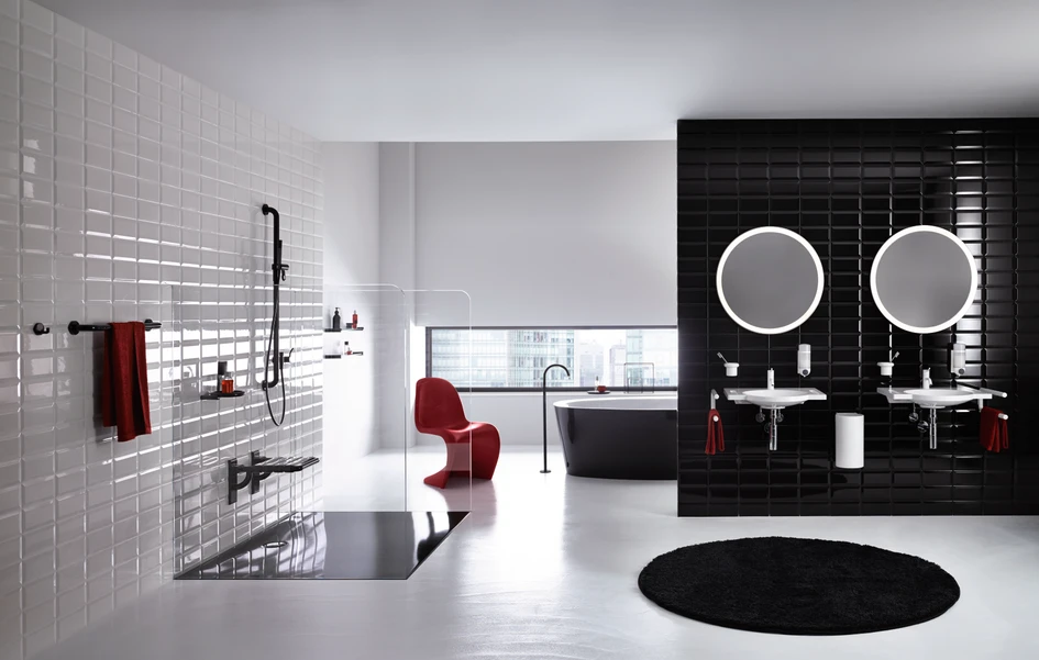 Ten years later, its distinctive formal vocabulary was taken up again with the Sanitary Range 477 to develop a consistent geometric design idea for application in all areas of the home.